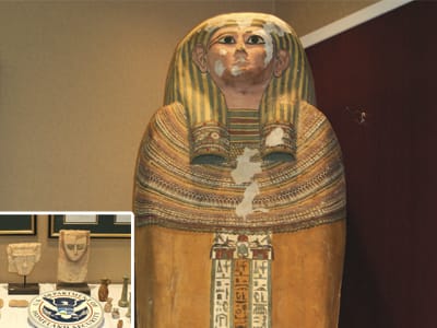 Some of the other items in the Khouli case, including an Egyptian sarcophagus dating back to 600 BCE (via metro.us)