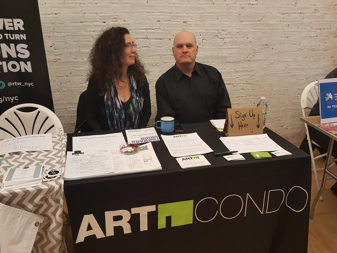 The groups focused on the arts, such as the People’s Cultural Plan, had more local concerns that nevertheless had the imprint of resistance to the kinds of plutocratic notions that underlie the current nationwide dominance of a predatory, conservative agenda. Art Condo consists of a group of artists who have taken a collectivist, entrepreneurial approach to the twined issues of gentrification displacing long-term residents and housing scarcity by pooling their money to purchase a buildings that may then be renovated to provide stable, dependable live/work spaces for local residents and creative workers. Spaceworks, a nonprofit dedicated to developing more long-term, affordable rehearsal and studio space for artists working in New York City was also present at the fair. Lamensdorf expressed particular enthusiasm for the Artistic Freedom Initiative, an organization that provides legal services and resettlement support for artists around the world who are censored or persecuted for their work.