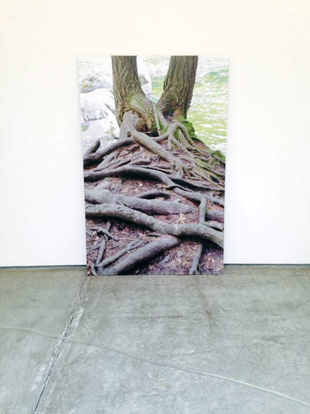 There is also a set of large-scale nature photographs — ripples in a pond, a network of tree roots echoing the tubular patterns of “Together” — that lean against or hang from the walls. These also feel as if they are part of the same concept, though they are each independently titled and one, “Live Airborne Systems,” which captures the image of a flock of seagulls converging on bits of bread tossed on the surface of the water, is from 1968, while the others were made this year.