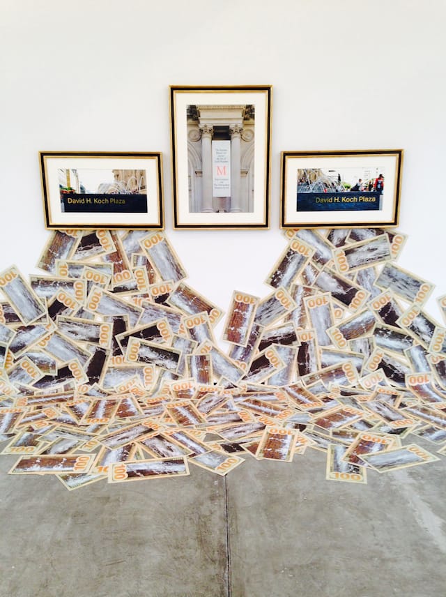 David H. Koch, the left’s favorite low-hanging fruit, is the subject of Hans Haacke’s latest jeremiad on the state of institutional culture, an installation called “The Business Behind Art Knows the Art of the Koch Brothers” (2014), which takes aim at the Metropolitan Museum of Art’s newly unveiled and much-pilloried David H. Koch Plaza.