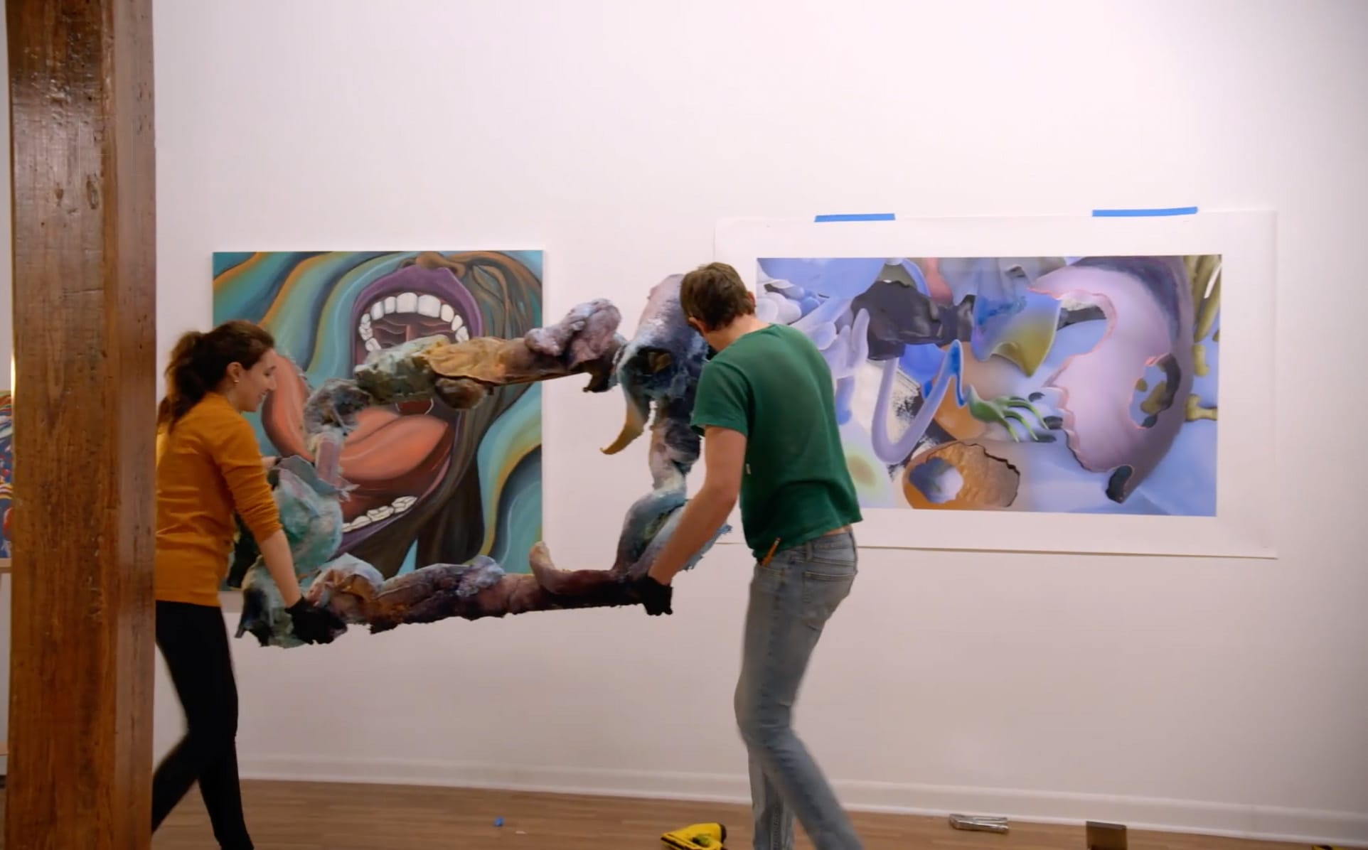 While the competitive element remained absent, the fifth episode was infused with tangible chemistry between the artists and the judges. The bar was set pretty low, but there were actually a few funny interactions that brought the show back to life. At one point during the studio time, the judges paid a visit to Jillian Mayer while she had her head shoved underneath a blanket to record a sound bite for an interactive part of her installation which was equal parts ridiculous and relatable. Misha Kahn was running around like a chicken without a head in the last hour of work time too, but I haven't decided if I was laughing at him or with him at that moment yet. Most likely a bit of both ...