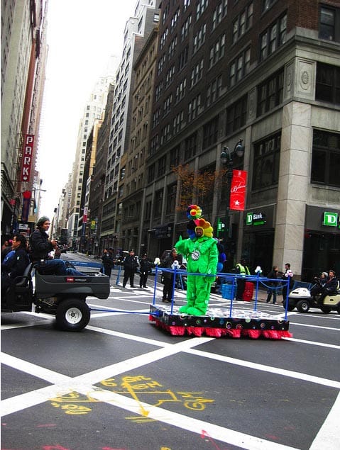 The jump to holiday parade floats is a logical one for the Japanese artist who spearheads Superflat, a movement whose chief tenet is to further flatten high and low culture until no seam is visible: keychains are the same to Murakami as million-dollar paintings, the floats are just icing on an international aesthetic cake. It’s just fun to see Murakami’s mascots in the same context as Kung-Fu Panda and the Pillsbury Doughboy, but Murakami’s float is selling nothing but his own artistic ideas.