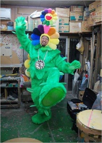 Murakami in his flower suit (image from gothamist.com)