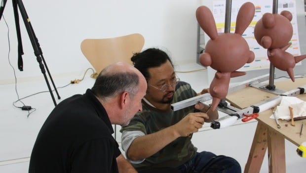 Murakami preps models for this floats (image from NYTimes.com)