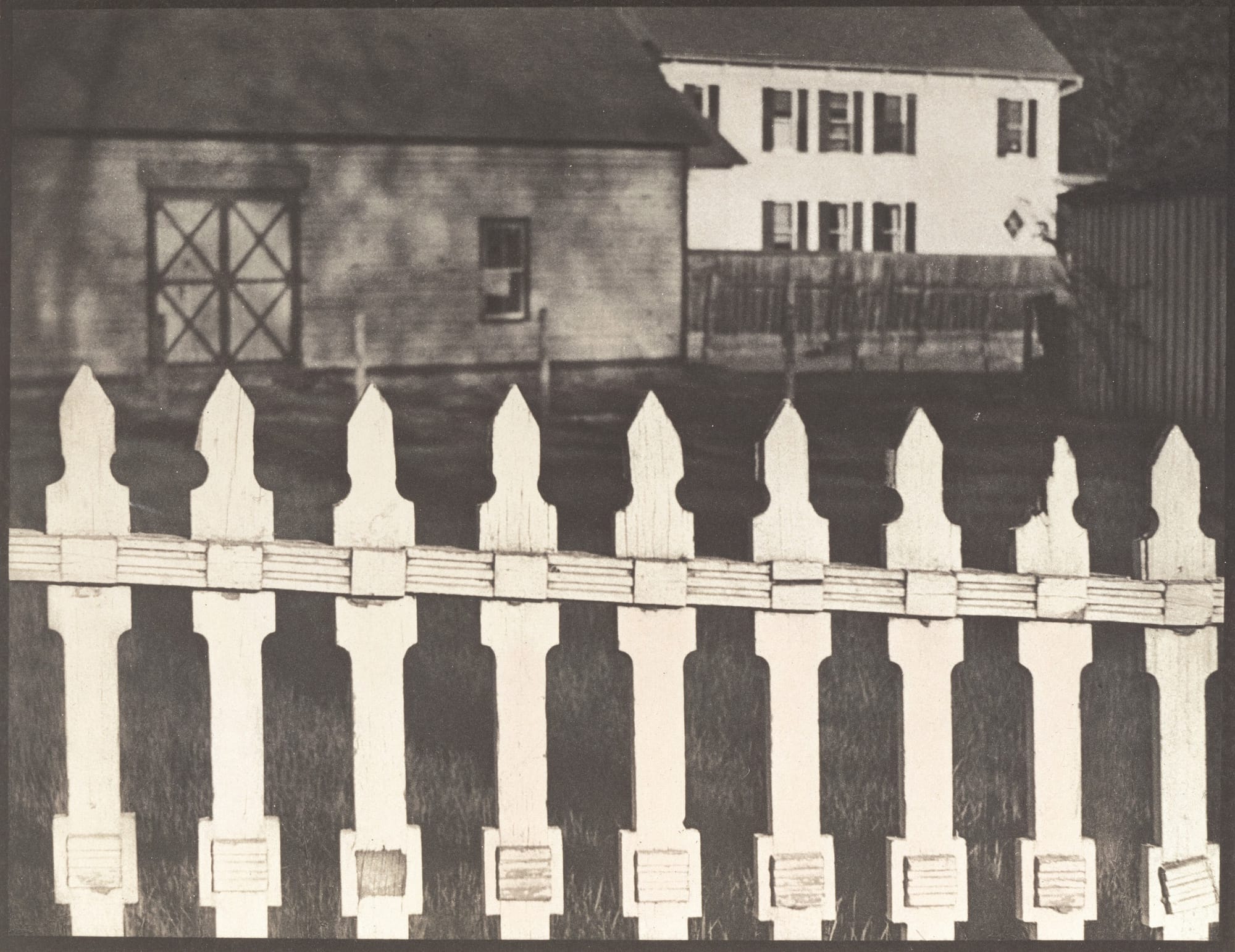 Printed in the June 1917 issue of Camera Work alongside an essay on photography, Paul Strand's "The White Fence" (1916), a straight shot of a white picket fence in Port Kent, New York, became an iconic image — both for its composition, which sharply deviated from the pictorialist traditions dominating photography at the time, and for its focus on a seemingly unassuming structure that spoke volumes about American suburbia ideals and dreams of property ownership. Today, this photograph is stored in the collections of Los Angeles's Getty Museum, alongside more than 180 images by Strand documenting communities around the country.