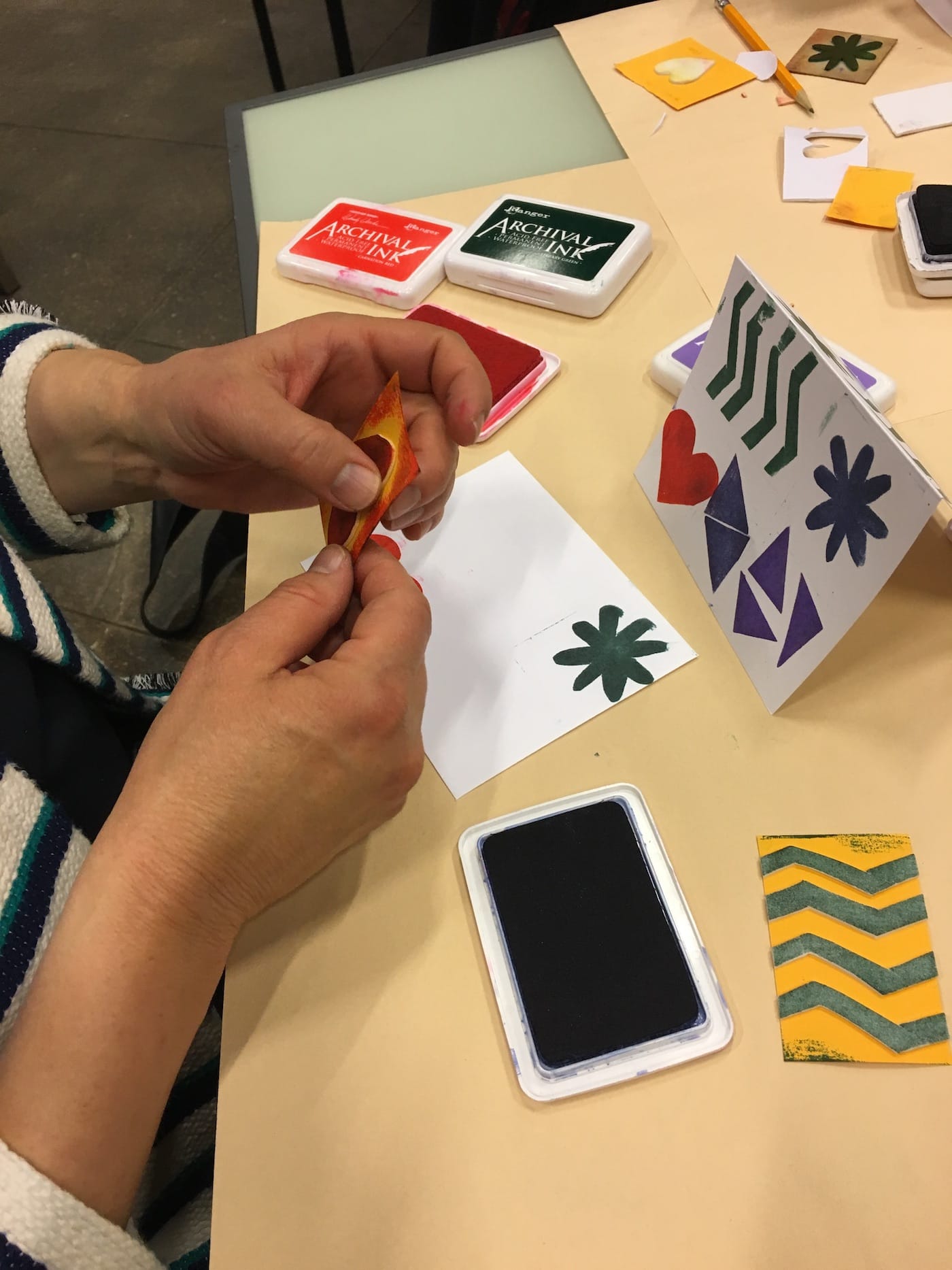 Accordingly, “The Art of Hope” program also engages its participants in some crafting exercises. After looking at “The Storm,” for example, group members created stamps and designed cards that would ideally be sent out to estranged relatives or friends as a way of reaching out. After viewing a brightly-colored abstract landscape by Hans Hoffman, facilitators led participants in a meditative breathing exercise; later they created clay coil pots.