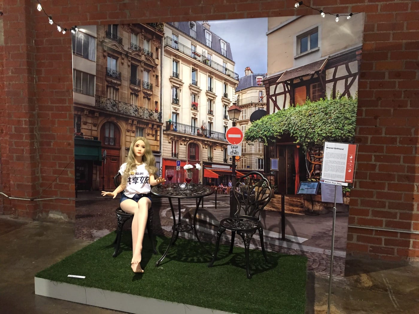 Others are indeed notable failures, like the Spruce Goose (Howard Hughes’s massive plane whose maiden flight lasted but one minute) or the DeLorean DMC-12, the gull-wing doored sports car that was immortalized in Back to the Future, though the company was dragged under by its owner’s financial and drug charges. These, however, are illustrated with nothing more than small models — the Spruce Goose still in its box. There is an abundance of obsolete tech gadgets, mostly from the ’90s and aughts, each less interesting than the one before it. Then there are the sex gadgets, the most prominent of which is the “Shared Girlfriend,” a Chinese sex doll which users could rent by the day. West has his displayed in a European café diorama, where visitors can snap a selfie with her, though it’s not clear why this recent and little-known failure is worthy of the most elaborate installation in the show.