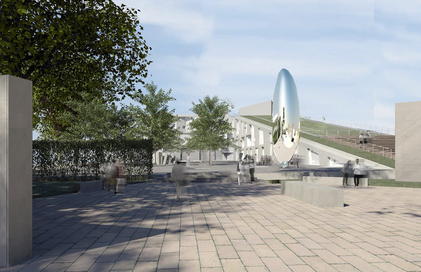 The Museum of Fine Arts, Houston (MFAH) unveiled a new outdoor sculpture on Monday, a monumental reflective piece by Anish Kapoor that immediately brings to mind his iconic “Cloud Gate” in Chicago, more widely known as “The Bean.” The sculpture, known as “Cloud Column,” now stands on the newly developed plaza of the museum’s teaching institute, the Glassell School of Art. Never before displayed in public, “Cloud Column” is actually a precursor to “Cloud Gate,” and it stands upright rather than curve over the ground.