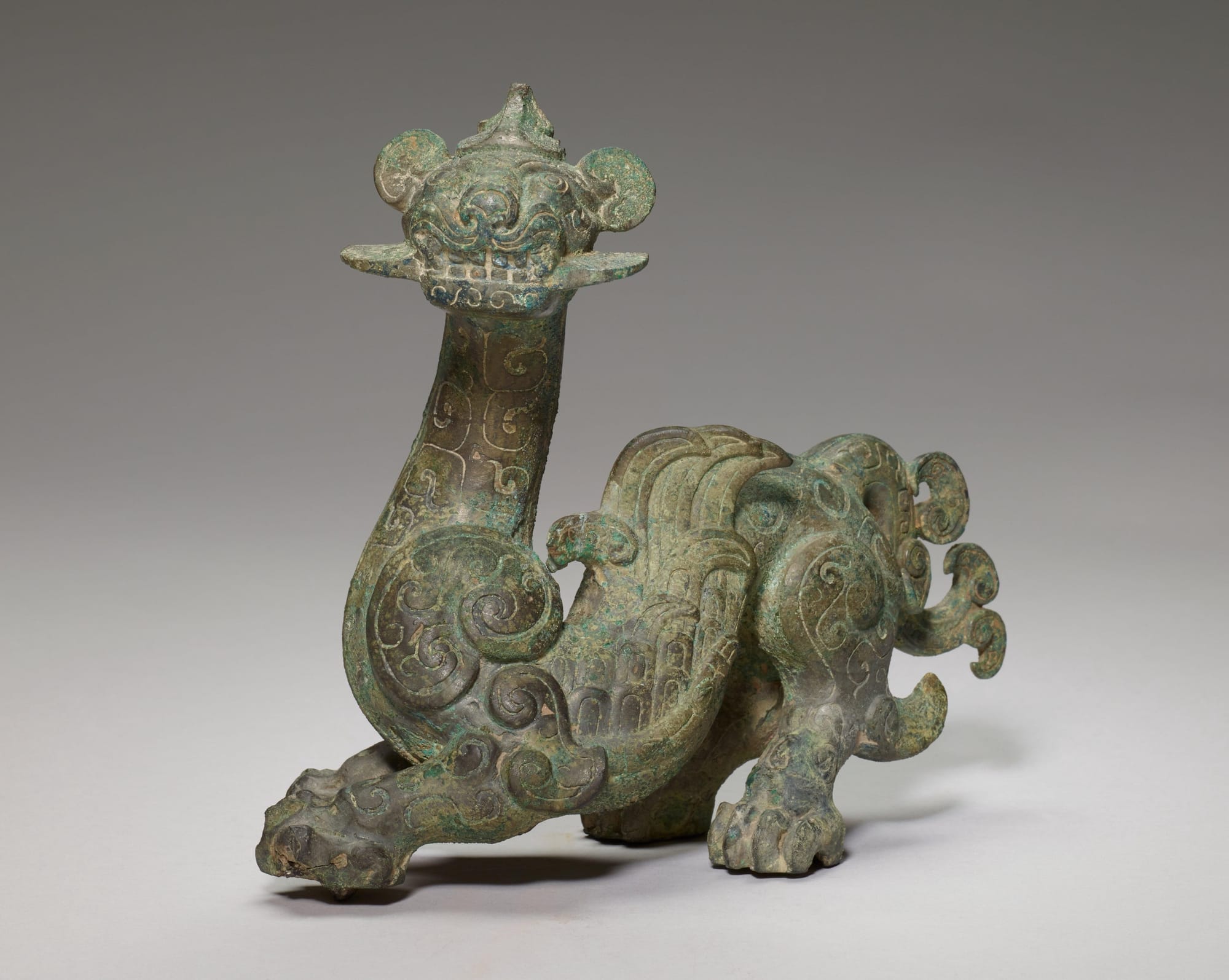 Since the accident, the museum has placed another ancient vessel in the owl's place — a majestic bronze winged dragon.