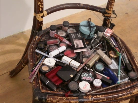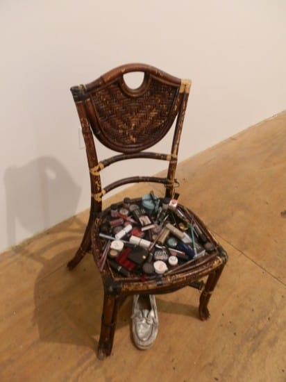 While still a piece of furniture from v’s loft, “Glamour Chair” (2011), covered in makeup, was a work that contained the sense of play and humor that I was looking for in a Justin Vivian Bond exhibition rather than self-aggrandizement.