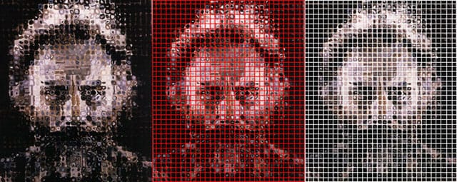 I started working on my Chuck Close Filter in September of 2001. The idea came to me the month prior, when I flew to Los Angeles for the Adobe Design Achievement Awards. The creators of Photoshop gave me first place in the Creative Illustration category for my “Barcode Jesus” portrait. I felt that my creative efforts had finally been validated, even though most people still considered computer art to be a lesser medium. One person in particular, an artist whom I really admired, seemed to have a big problem with computers as vehicles for art. He referred to them as “labor-saving devices.” This was Chuck Close.