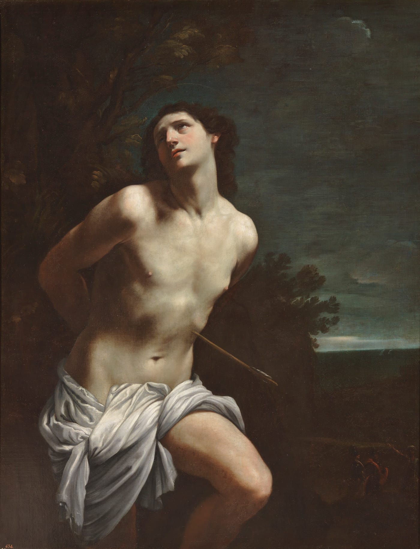 The saintly nude, by contrast to the heroic one, draws on some of the conventions of the female nude to induce sympathy. Guido Reni’s “St. Sebastian” (c. 1617–19) leans yearningly into his bloodless arrow wound as he gazes heavenward, his soft pectorals suggesting pubescent female breasts. While paintings like these were not confined to the sala reservada, Sebastian’s drapery, which once coyly revealed a significant section of the hollow of his groin, was doubled in size to conceal it in the eighteenth century.