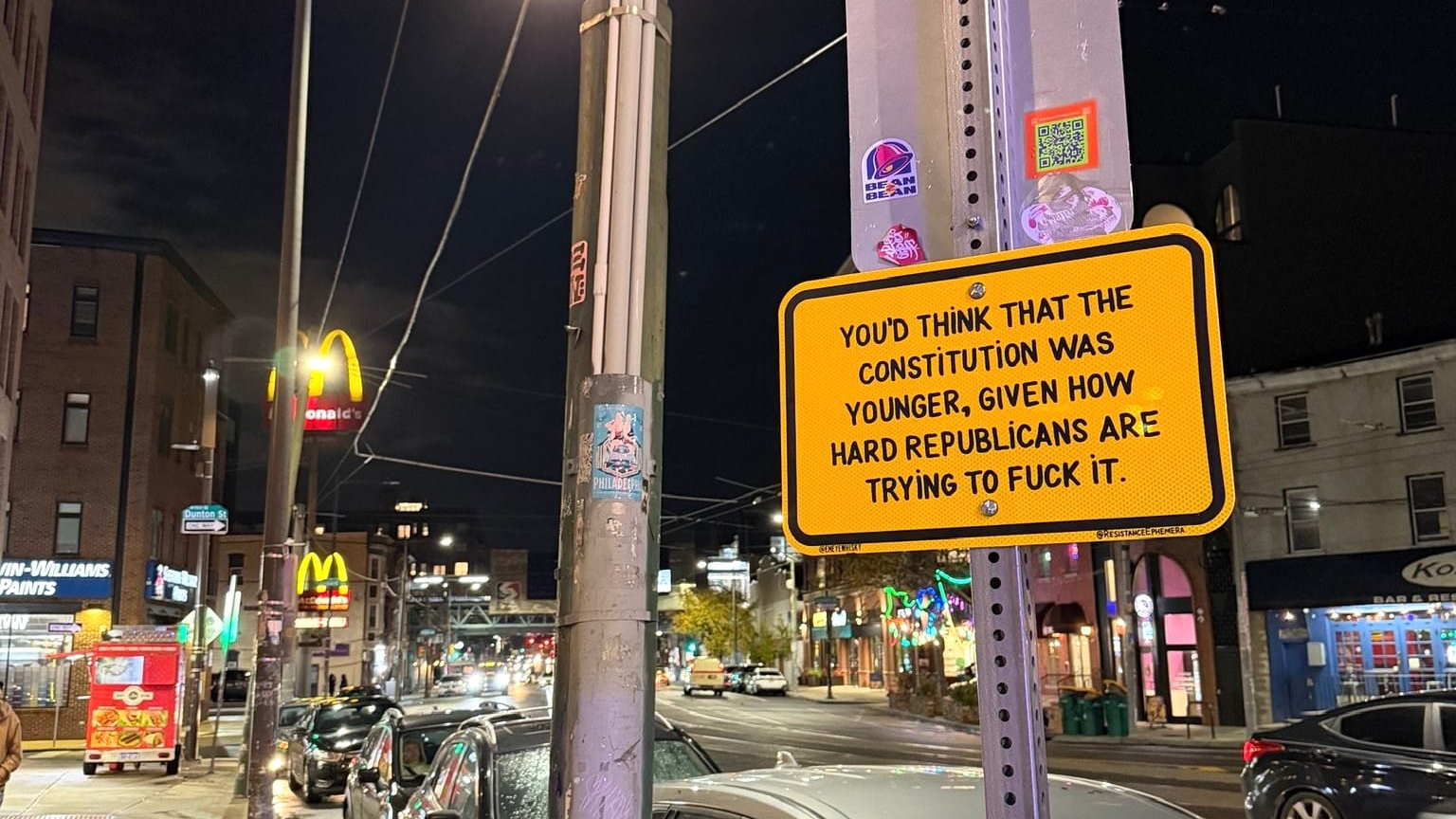 An artist who goes by Make it Weird has installed signs mimicking common traffic signage across Philadelphia to alert residents of ICE threats and looming authoritarianism. One of the signs reads: "Somewhere in America, a little girl is hiding in an attic writing about ICE." Isabella Segalovich reports from Philadelphia.