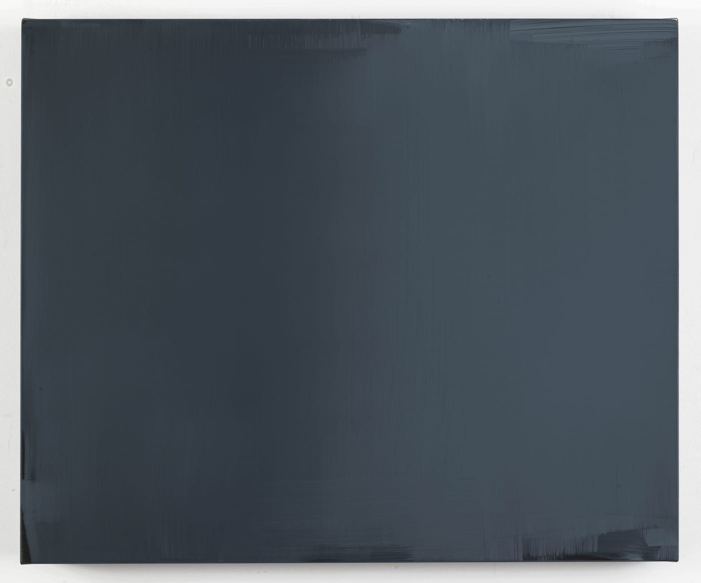 Something different happens in the painting on the right. Its gray-green milky hue slowly darkens from left to right until it is black along the right-hand side. Again, the association for me was with the sky, a darkening storm cloud. And, as with the painting on the left, the association falls away and I am looking at a subtleness of paint and hue that reaches an exquisite hush. By placing these two related but very different paintings together, Haynes underscores that she is never programmatic, no matter how circumscribed her means: every stroke is discovered and felt. She approaches monochrome but never arrives.