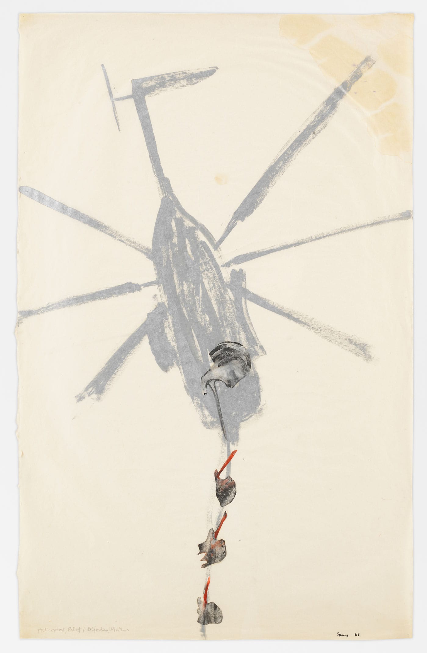 Spero made this stunning work for the Venice Biennale in 2007, just two years before she died. But she first imagined it many decades earlier. In 1966, horrified by the US war in Vietnam and the gruesome images of it appearing in the media, she embarked on The War Series (1966–70), a group of frenetic paintings featuring bodies, heads, helicopters, and bombs, often expelling things from their openings and orifices. “They were manifestoes against a senseless obscene war, a war my sons could have been called up for,” she told art historian Deborah Frizzell. “These works were exorcisms to keep the war away.”
