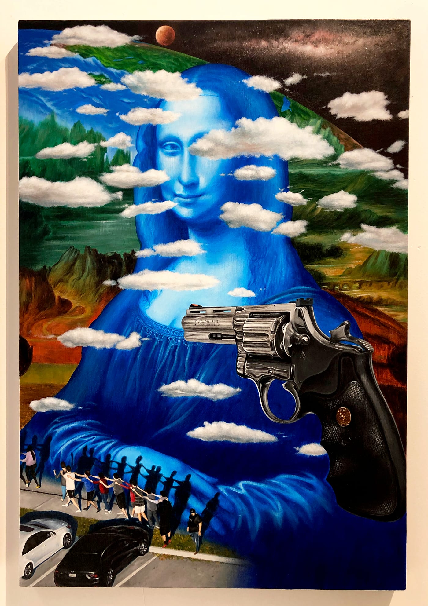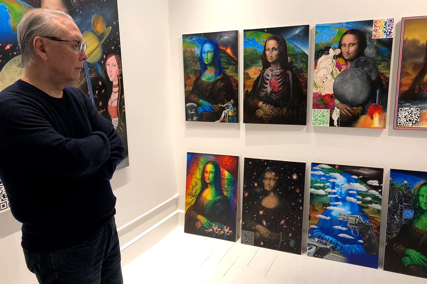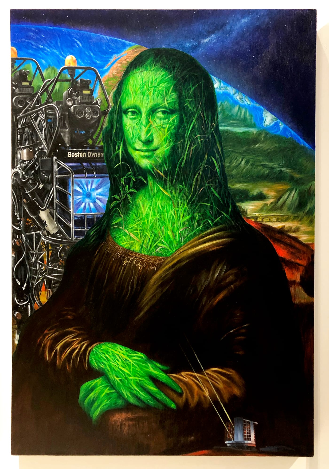 “As soon as I made the first paintings featuring Mona Lisa, I knew that I had found a powerful thematic tool,” he recalled. “I felt that I could speak through her, and that she could become a symbol of who we are as humans.”