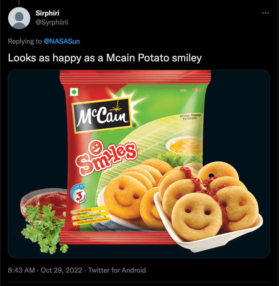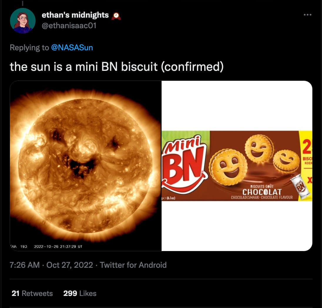 The image of the Sun with a smile suggested by dark patches on its surface drew analogies to everything from the Marshmallow Man to Teletubbies.
