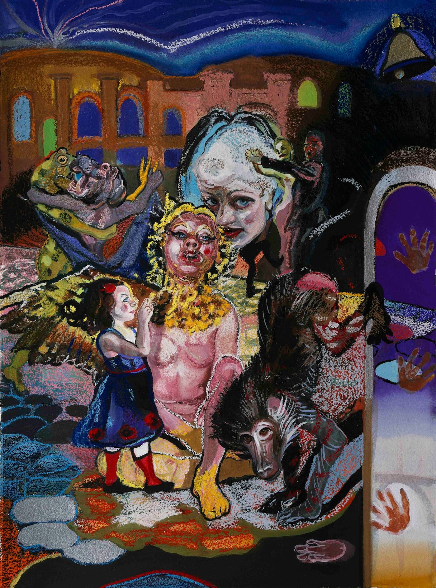 A few years ago, I reviewed an exhibition of pastels, Natalie Frank: The Brothers Grimm at The Drawing Center (April 10–June 28, 2015), curated by Claire Gilman. Viewers did not need to know which story Frank was drawing inspiration from to be struck by what they saw: uncanny scenes that approached the creepiness flooding through these fairy tales like a full moon on a cloudless night. Her attention to detail animated each of the 25 works in the exhibition. There was something to see everywhere you looked.