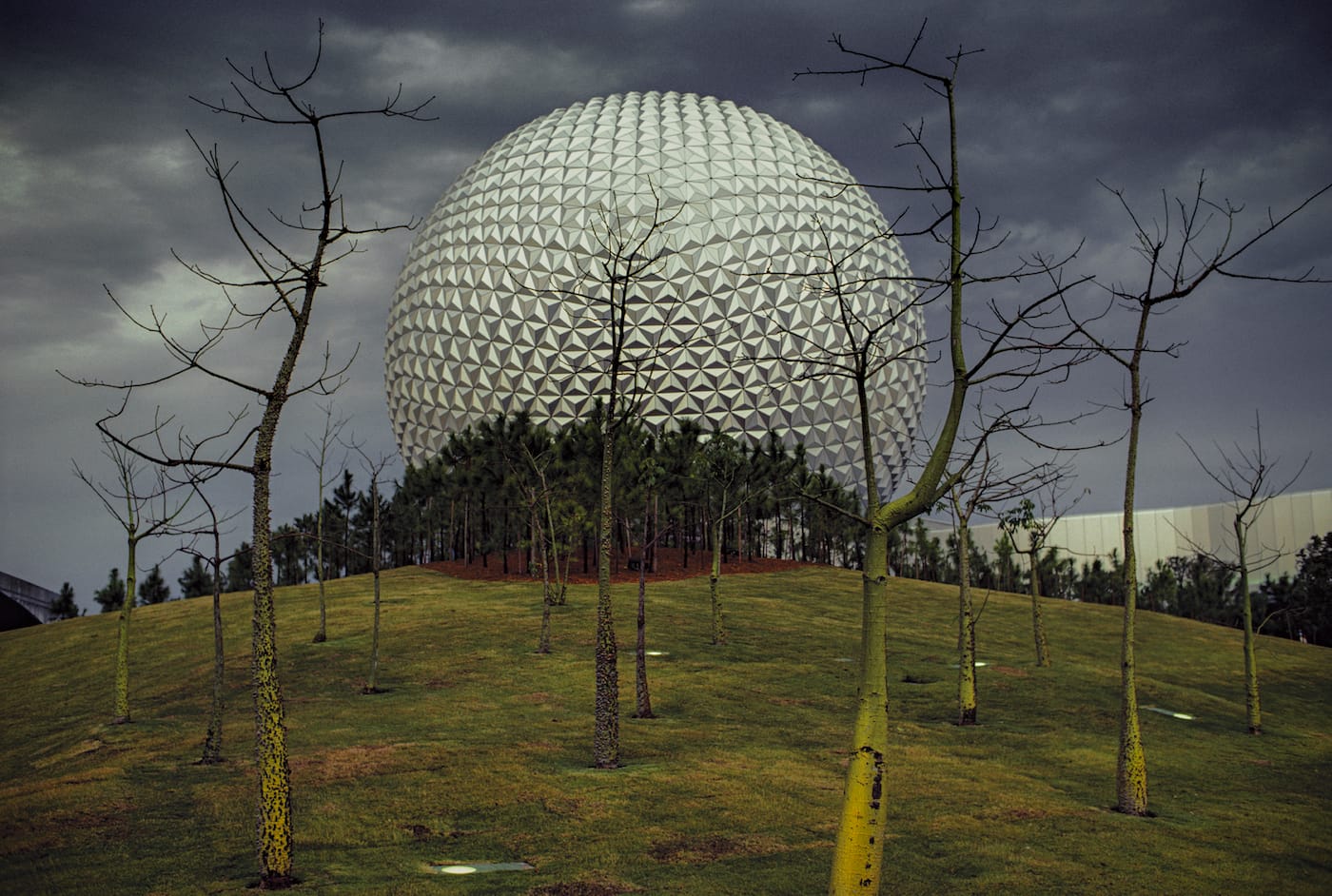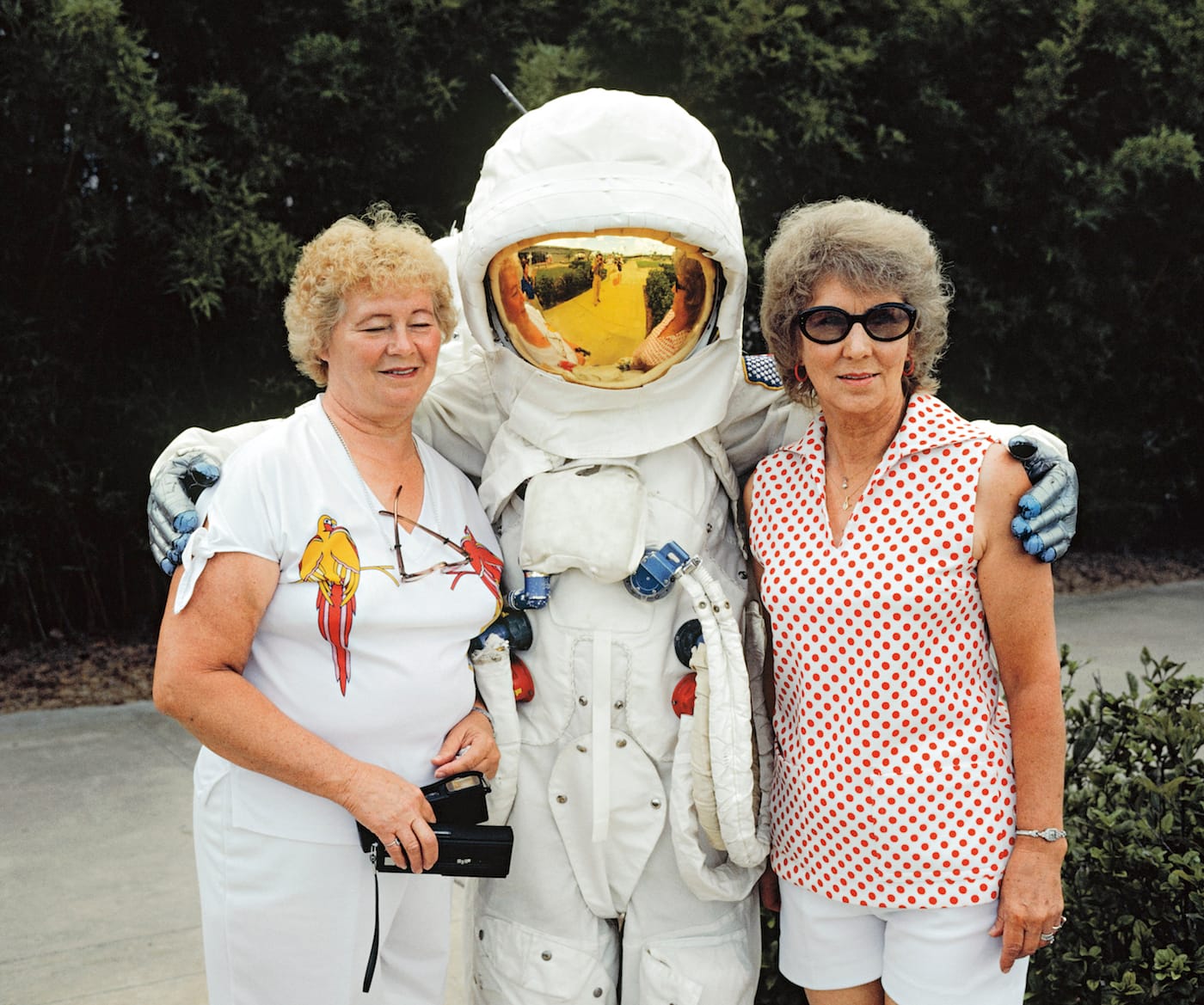 A rather grisly human torso washed ashore on a Miami beach does make an unsettling appearance in the book, and was the image that riled his National Geographic editors (all of the shots in A Peculiar Paradise are published for the first time, so they weren’t selected for the magazine). However while most of the images do have some of that Weegee visual wit, they are concentrated on living people. Benn has surreal shots of alligators at the Gatorland roadside attraction, with one blurry creature slipping down a slide on the book’s cover; the animatronic dinosaurs awaiting installation at Epcot; and the gaudy architecture in a pre-Trump Mar-a-Lago. Yet the most engaging of his richly hued Kodachromes are the portraits.