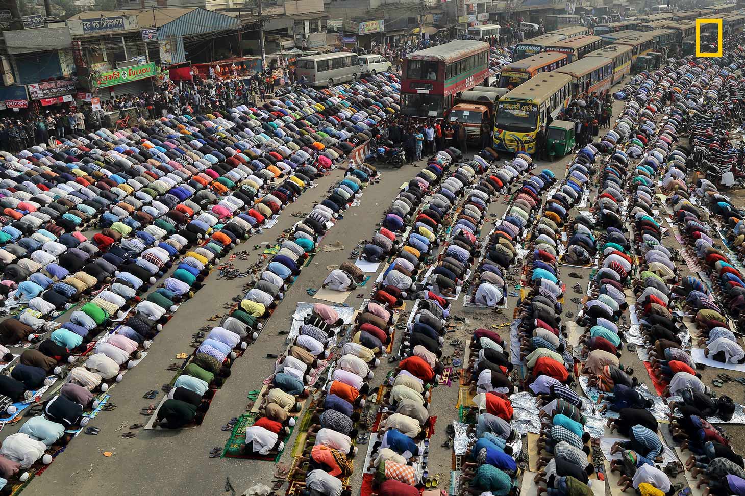 “People pray on the street in Dhaka, Bangladesh during Ijtema. Bishwa Ijtema is one of the major Islamic religious gatherings which is [observed] annually in Dhaka and millions of Muslims visit [during this time]. Dedicated prayer grounds are not [large] enough to handle this huge number of people, so large numbers of people come to [Tongi,] the main street of Dhaka. All the ground transportation and [pedestrian crossings] are suspended during that time.” — Sandipani Chattopadhyay