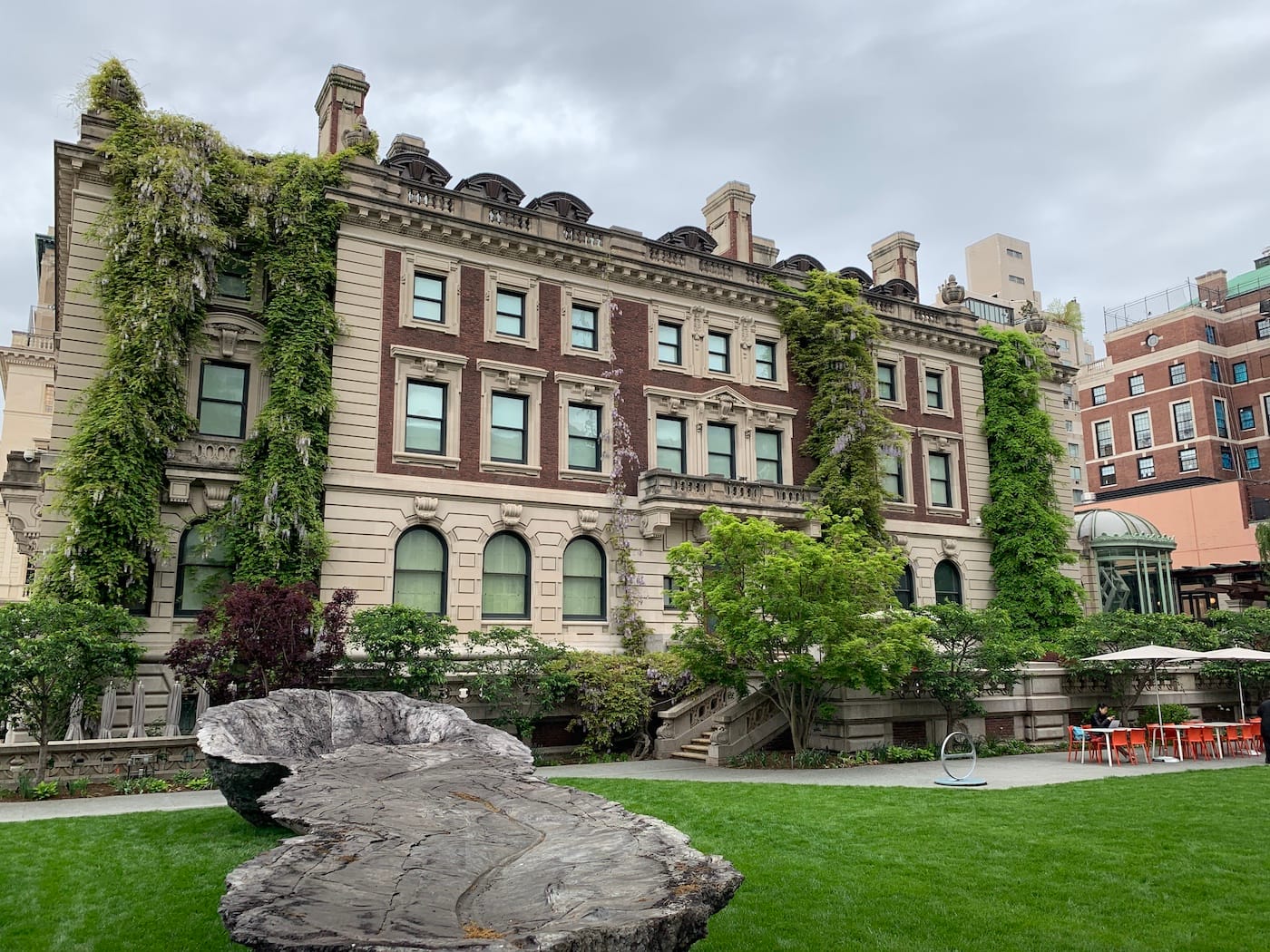 By contrast, the landmass sculpture that sits inside the museum’s garden indexes the entirety of Manhattan. For most of history, ecological change occurred relatively slowly — until humans sped up the process with industrialization and urbanization. “Petrified River” (2018–19), by Antonio García-Abril and Débora Mesa with Ensamble Studio, represents the transformation of this island from forestlands into cityscape. The architects have simplified the area’s topography into three simple categories — hill, river, and pond — terraforming their massive boulders made of reinforced concrete into an abstract symbol of the island. I interpret this work as an homage to erosion, both the natural kind and what comes with pollution. Inverting those hills into haunches, “Petrified River” envisages the waterways of Manhattan as an abject wasteland: arid riverbeds and an empty water basin.