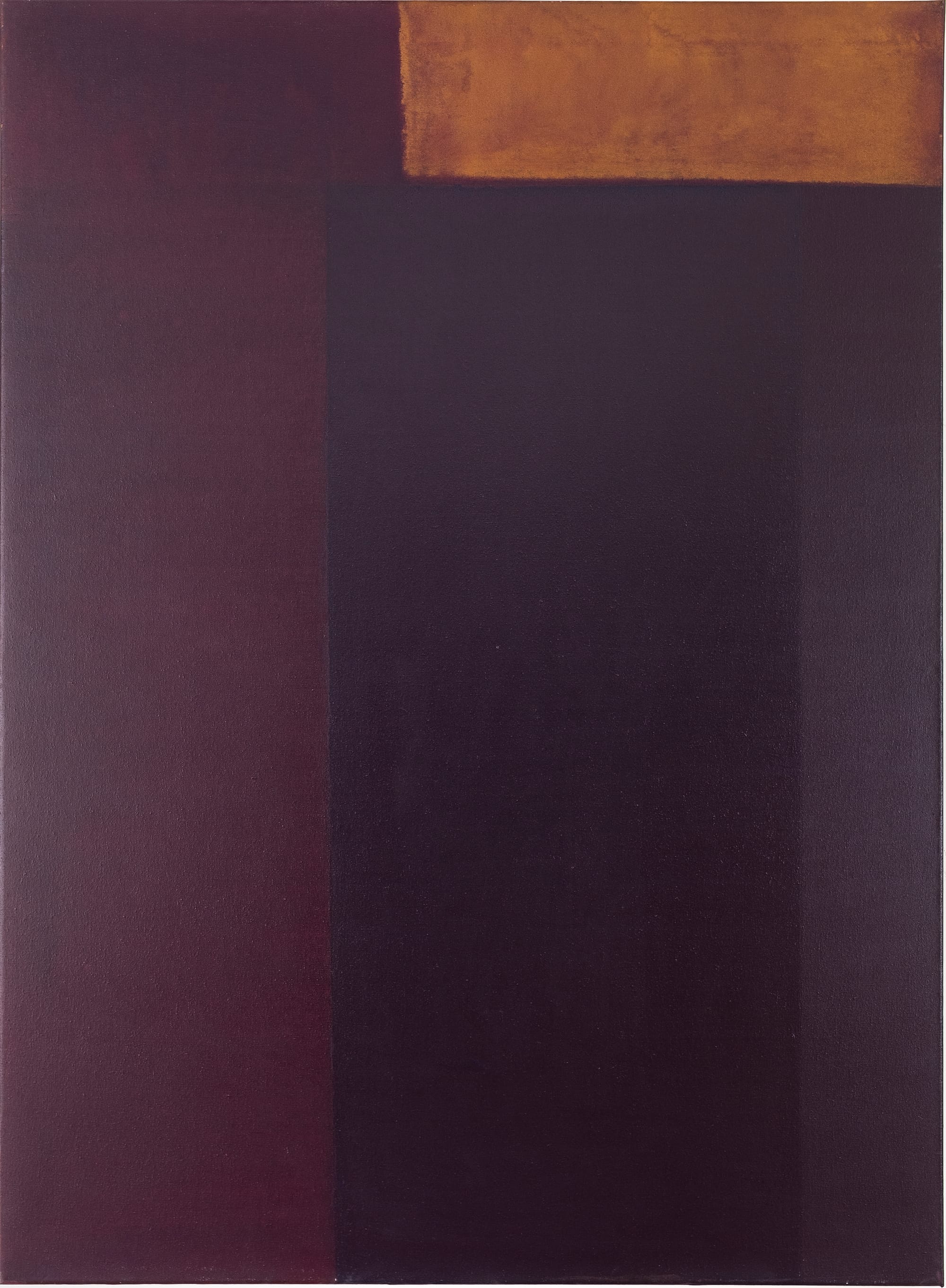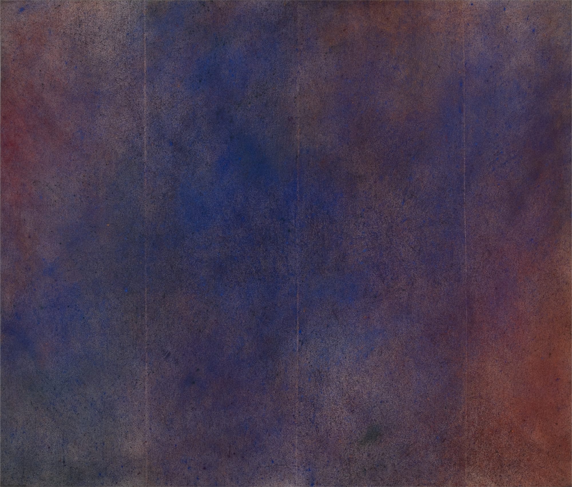 Bhavsar’s subject is the fullness of being, which mixes meanings at their most elusive with incontestable facts — one of which is that, literally speaking, his paintings are stable fields of dry pigment, layered and fixed firmly to the canvas. The stability of a finished painting is enlivened by two kinds of motion, one past and the other waiting in the perpetually renewed future. In the past are the gestures Bhavsar used to spread his colors over the horizontal surface of a canvas. These physical motions haunt each painting as it anticipates the viewer who will come alive to its flow of color, at once grand and granular, and awaken color itself to its protean life. Tracing Bhavsar’s development from the late 1960s to the 1970s, Beginnings celebrates the artist’s emergence at the Max Hutchinson Gallery in the early days of Soho, and at the Jewish Museum in uptown Manhattan. It was during those years that he began to endow somber magentas, grays, and blues with a smoldering complexity.