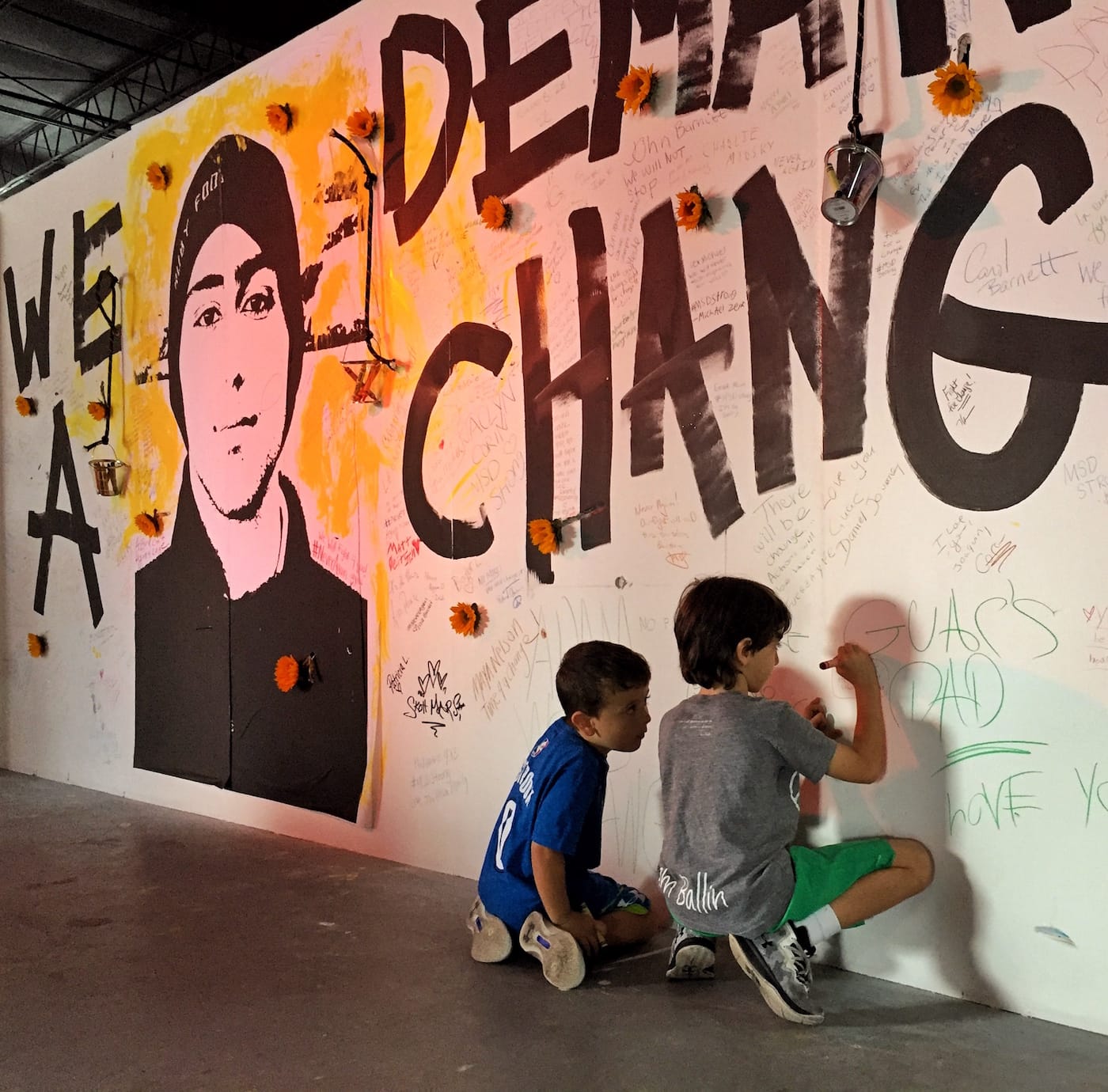 Students, relatives, and the tragedy’s first responders all stopped by. Contemporary art in honor of a tragedy is challenging to present, especially right after the event itself — it’s always less a reflection than a catharsis, more part of an ongoing conversation than a critical examination. But that’s not always the point: sometimes the work asks for change to prevent the tragedy’s occurrence, or provides a space to continue healing from it. Parkland 17 did both, asking for visitors to become political activists themselves, creating space for the parents and survivors to commemorate the slain. “These kids still really need this space,” said Charles. “A space for the community to mourn, bereave, and grieve together — and also open up dialogue.”