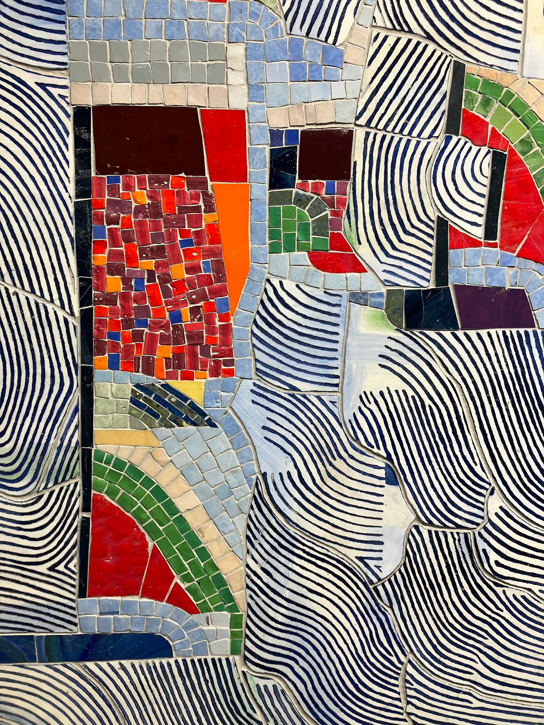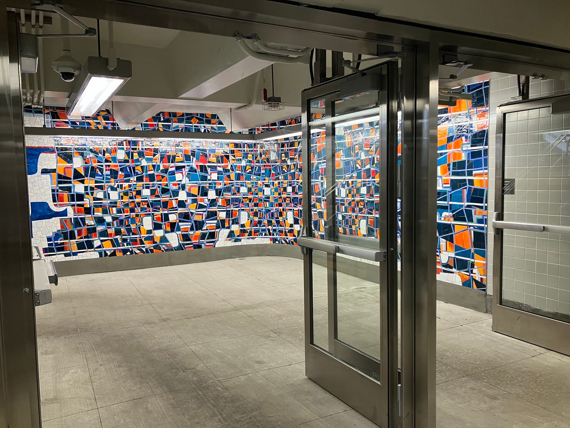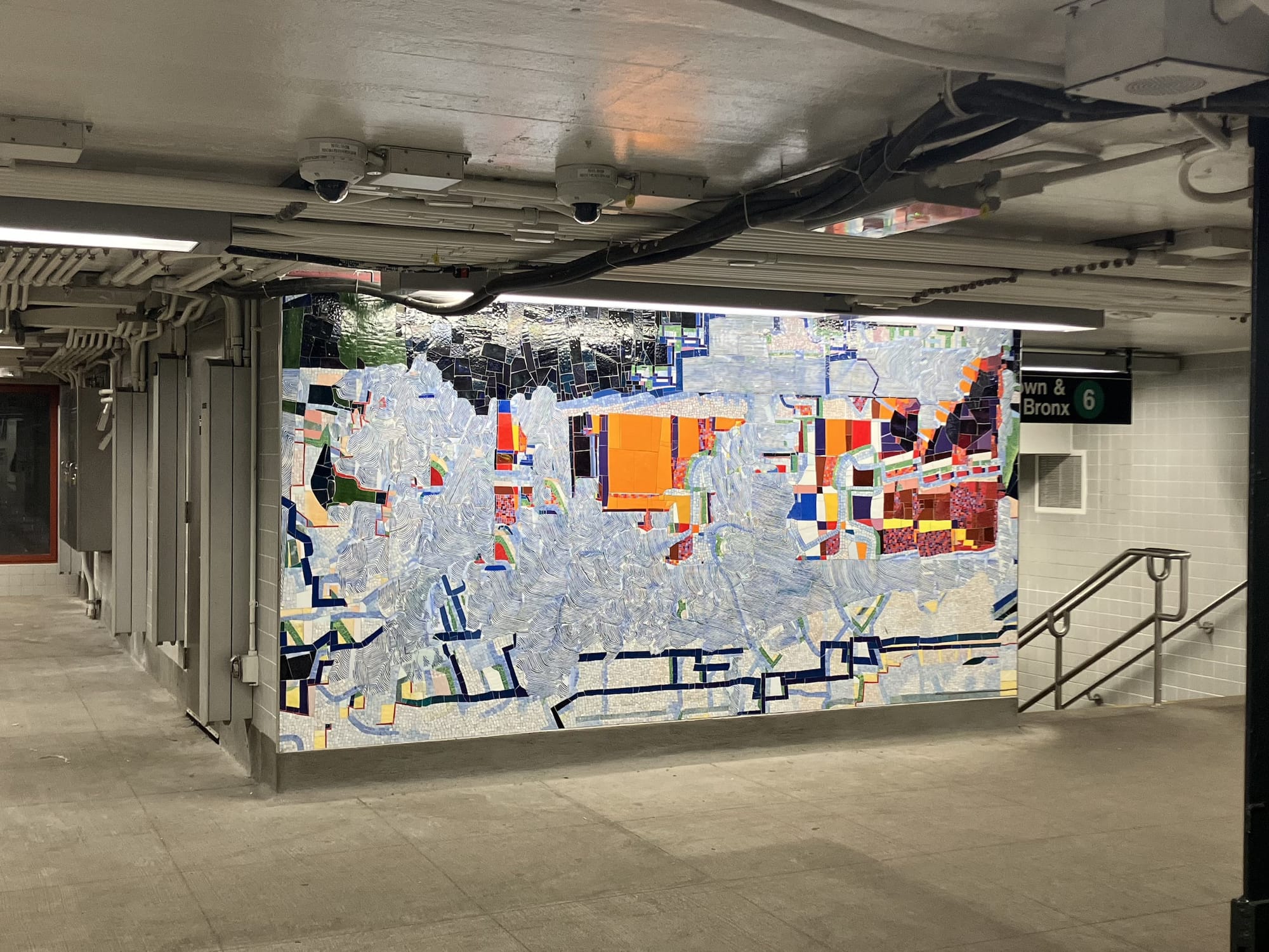 In her proposal, Davis also said the medium of mosaic, because of its composition of many individual parts, was particularly well suited to portray an abstract representation of the traversals occurring at Hunter College and the subway station.