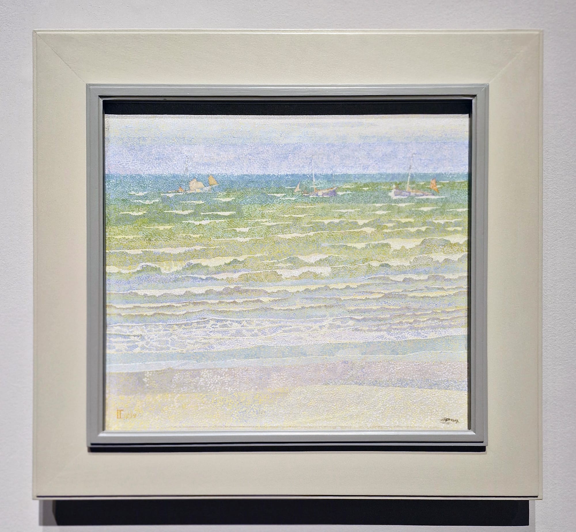 Seascapes should be brilliantly vivid celebrations of light — but, as in Jan Toorop’s “Sea” of 1899, they appear insipid here, as the method is inadequate for capturing depth and thoroughly lacking impact. The rare exceptions prove the point: While van Gogh's “The Sower” (1888) employs opposing yellow and blue, his use of longer, layered strokes infuses the work with thrilling dynamism. And Georges Lemmen’s 1890 portrait of Jan Toorop varies the size of the "dot," again to exciting effect. The majority of the rest of the works here, though .... Just think about how a dot is by nature one-dimensional. Regardless of their number, in this format, they will only ever form a collection of dots.