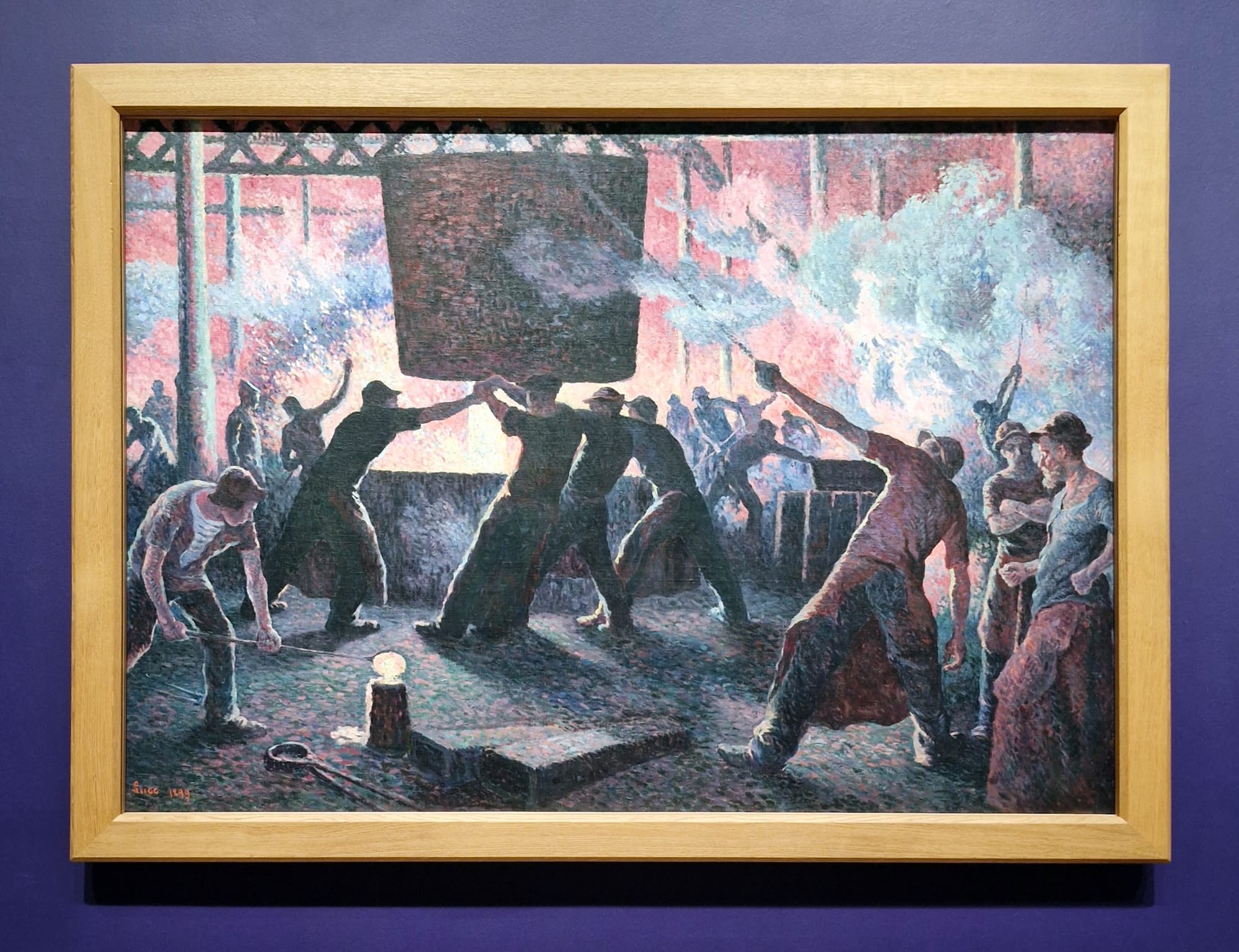 Much is made of the politically radical — "socialistic" — iconographic content, such as Jan Toorop’s depiction of workers in “Evening: Before the Strike” and “Morning: After the Strike” (1899–90), or Maximilien Luce’s rendering of workers in “The Iron Foundry” (1899). At least the wall text for the latter notes that, despite buying direct from the artist, Kröller-Müller’s husband, “without any apparent sense of irony,” hung it in the office of his iron ore and shipping business. This absurdity infuses the whole show, which exists because a wealthy benefactor — despite “supporting” the producers by buying from the artist direct — unironically chomped up all examples of an art movement that on paper represents socialist politics but is in itself technically prescriptive and stifling of deviation.