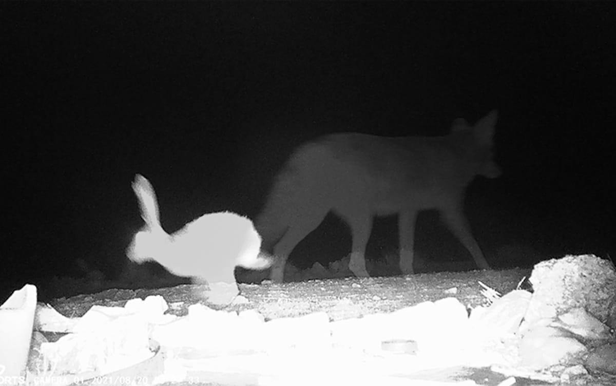 This observation of the misuse of desert wilderness lies at the heart of the exhibition along with Salgado’s “Not a wasteland” statement, which becomes encapsulated in United Catalysts's “Proof of Existence” (2022), a video work cataloging the visitors to a pond built at Mystery Ranch during our region’s years-long drought to provide much-needed water to local fauna. Mean says, “It's been painful to watch the desert go through this megadrought. Seeing the footage on those cams is proof that those animals still exist in the landscape and that our actions help or harm them.”