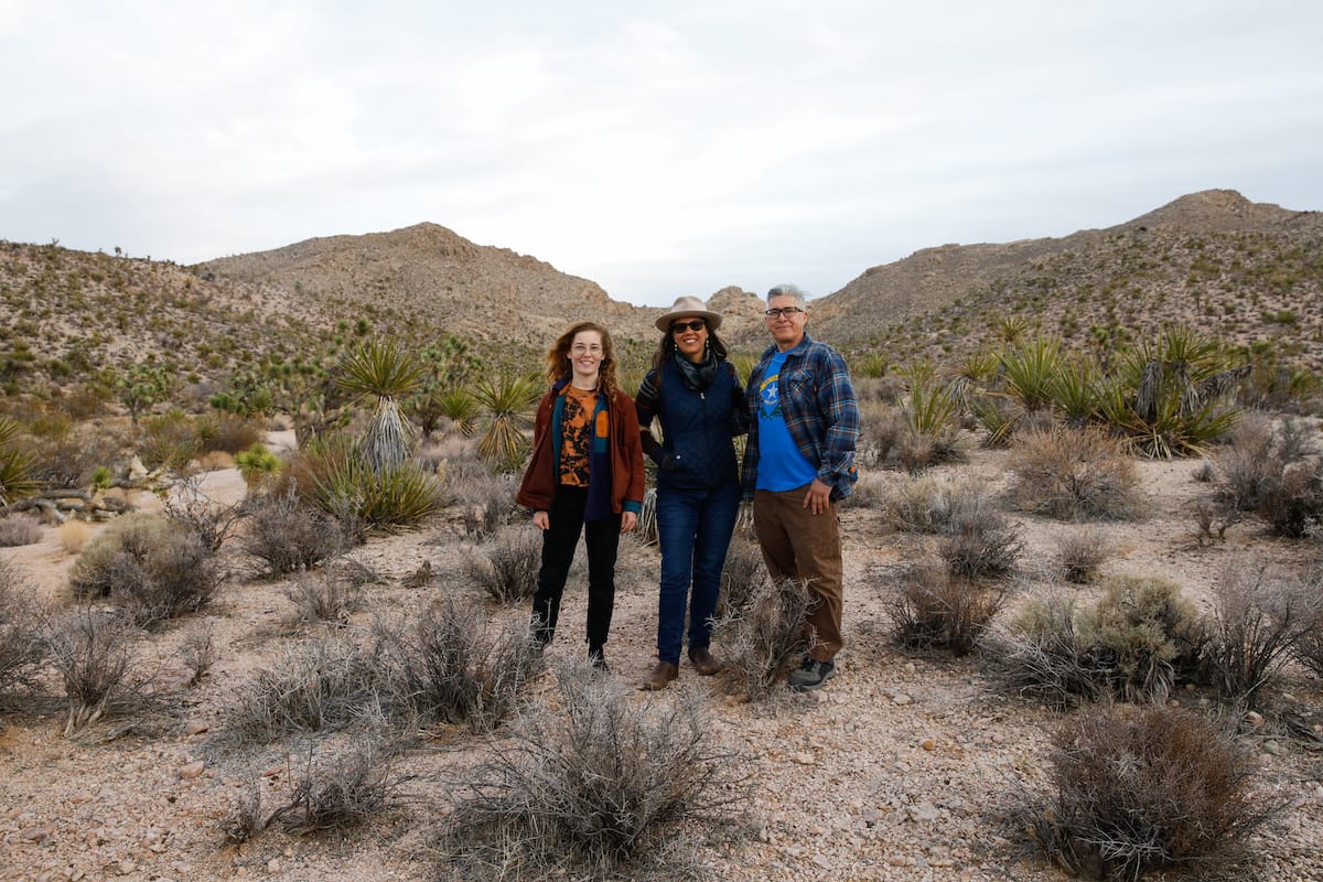 On the east side of Searchlight is Mystery Ranch, a residency program and creative incubator run by United Catalysts long-term collaborators and University of Las Vegas (UNLV) alums Kim Garrison Mean and Steven Radosevich. As their collaborative title implies, they are prime movers in creating necessary change. In 2020, at the big wooden table in the cabin at Mystery Ranch tucked into a majestic corner of desert (experiencing a sunset in this area is transformative), Mean began to form a plan. Spirit of the Land, an exhibition at the UNLV Marjorie Barrick Museum of Art, would be the final result, but first, there was a national monument to help create.