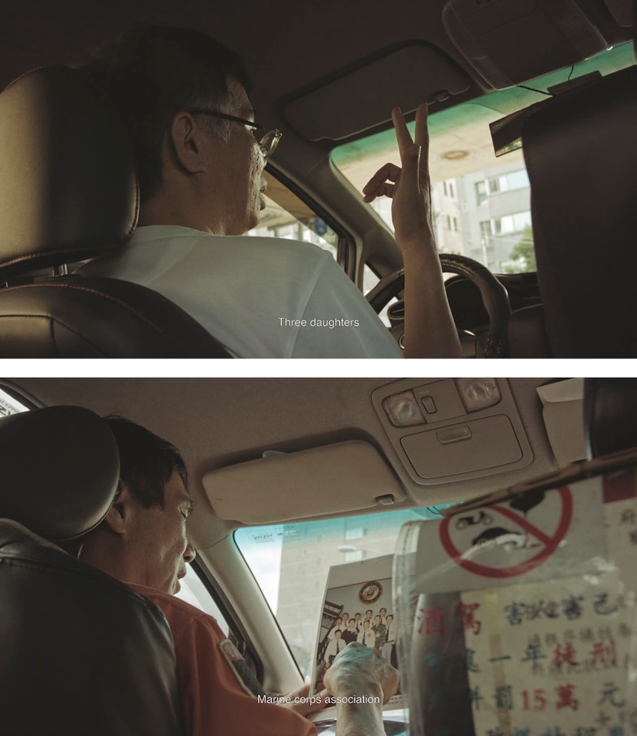 The artist Chia-En Jao, who lives and works in Taipei, created his deceptively simple Taxi films with cab drivers as he visited sites of colonial history around Taiwan. Any New Yorker who has chatted with a cab driver knows that exploring our contested neighborhoods and histories starts on the ride there. In one interview, a driver excitedly describes his firearms, explosives, and parachuting training in the military. When Jao asks what all of it was for, the cab driver talks about the plot to invade the mainland in the late 1960s. We glimpse, in his telling, an alternate history unfold, one in which Taiwan defeats the People’s Republic of China (PRC) and this muscular and garrulous man might be a war hero. Other drivers complain about mainlanders or share their disgust for Taiwanese politics — it’s vox populi, history lesson, and talk show in one.