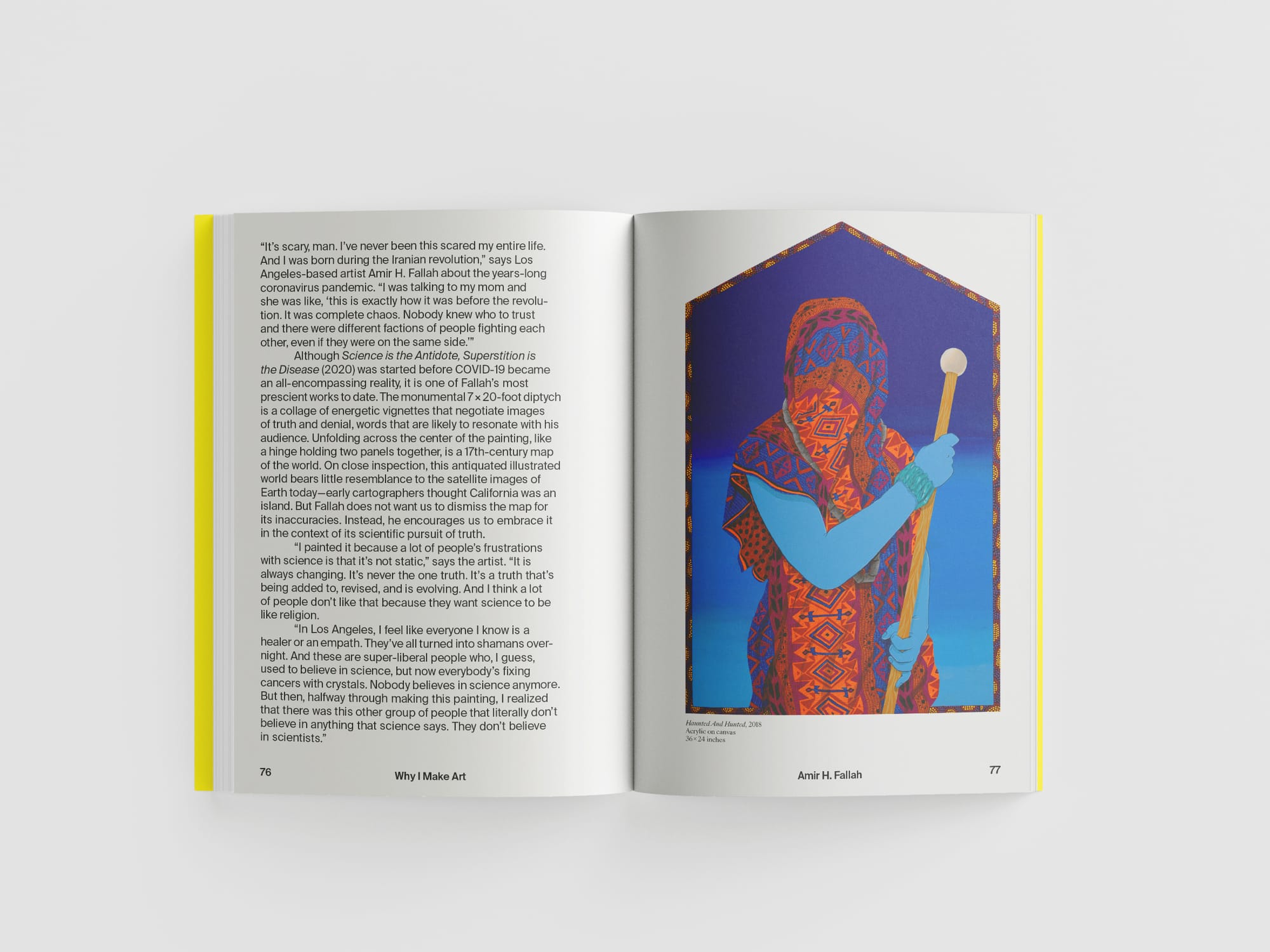 Page spread featuring Amir H. Fallah from Brian Alfred, Why I Make Art: Contemporary Artists' Stories About Life and Work, Atelier Éditions, 2022 (courtesy Atelier Éditions)