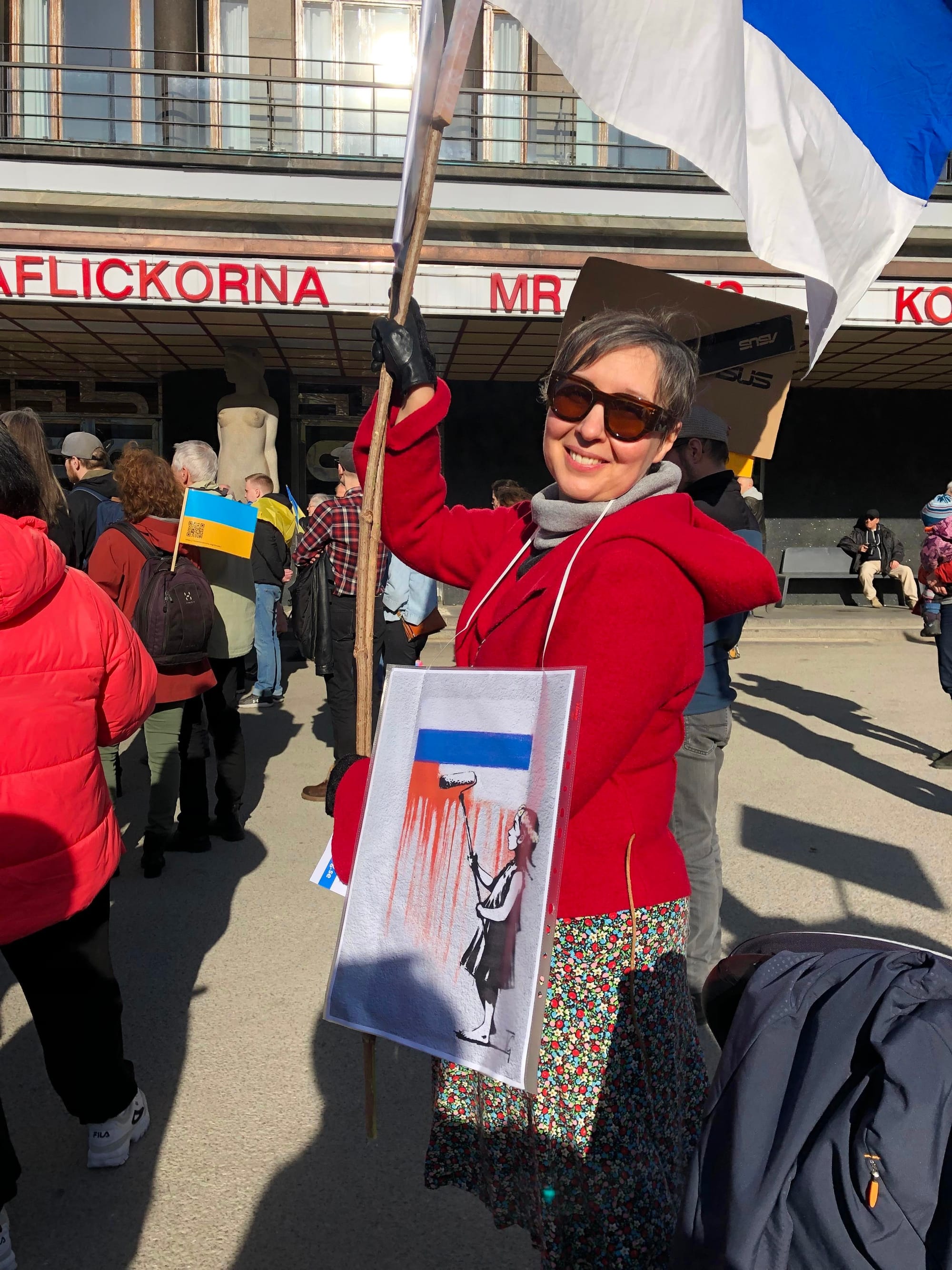 While Russians abroad can promote the new peace flag online and fly it in public, more than 15,000 Russians on the home front have been arrested for protesting the war in Ukraine. However, many have found alternate ways to protest, such as placing crosses for the dead in Ukraine, putting up posters, spray-painting graffiti, and writing anti-war messaging on paper bills.