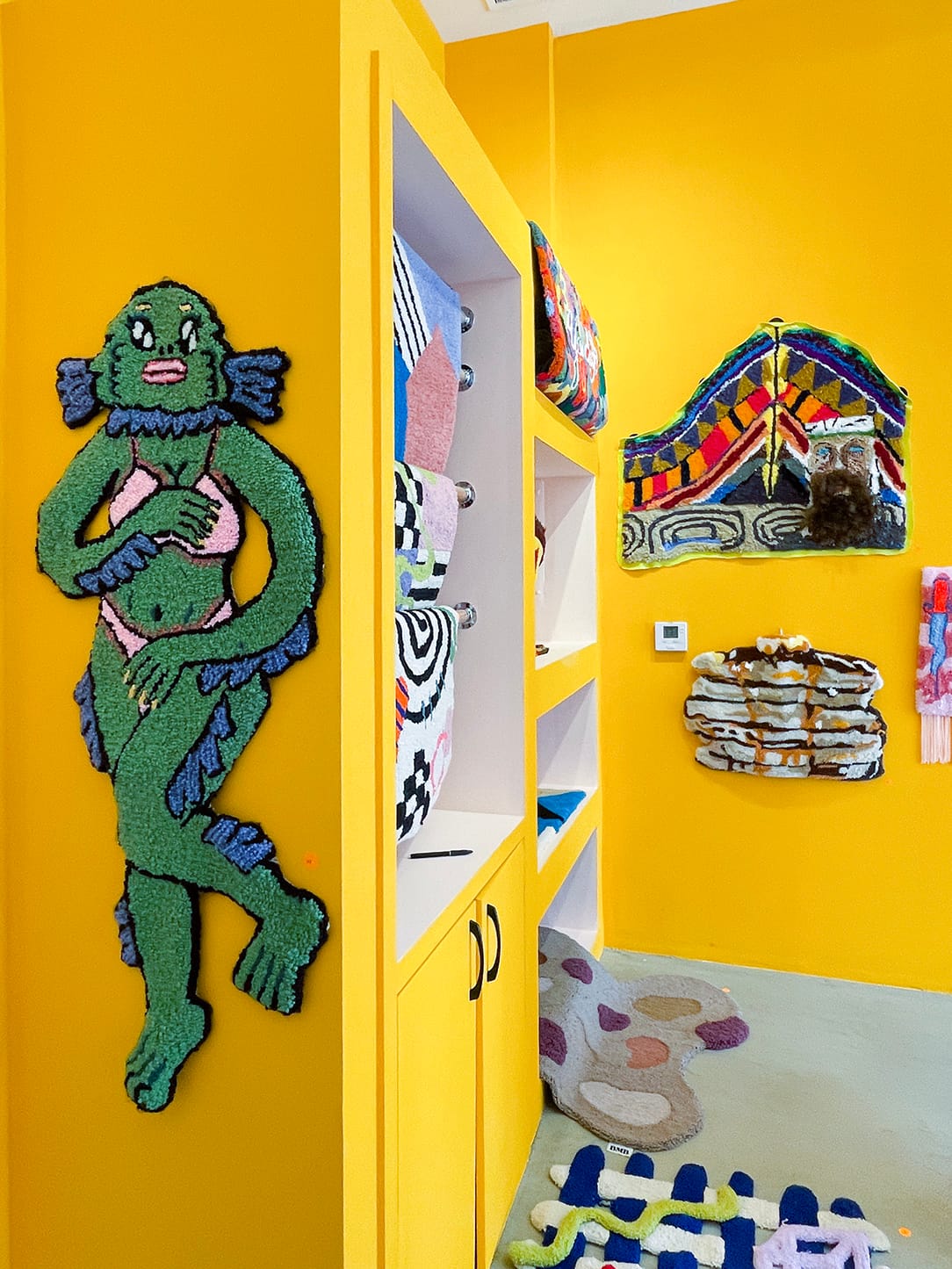 Aelfie used to be textile designer Aelfie Oudghiri’s showroom, but she transformed it into the Pandemic Folk Art Museum to showcase the resurgence of craft that emerged during the coronavirus pandemic. The inaugural show, Tufted Rugs, was inspired by a TikTok trend that demonstrated how you could draw freely with a tufting gun while simultaneously creating sturdy, practical rugs. Almost none of the artists in the show had made a rug before they discovered the craft on TikTok.