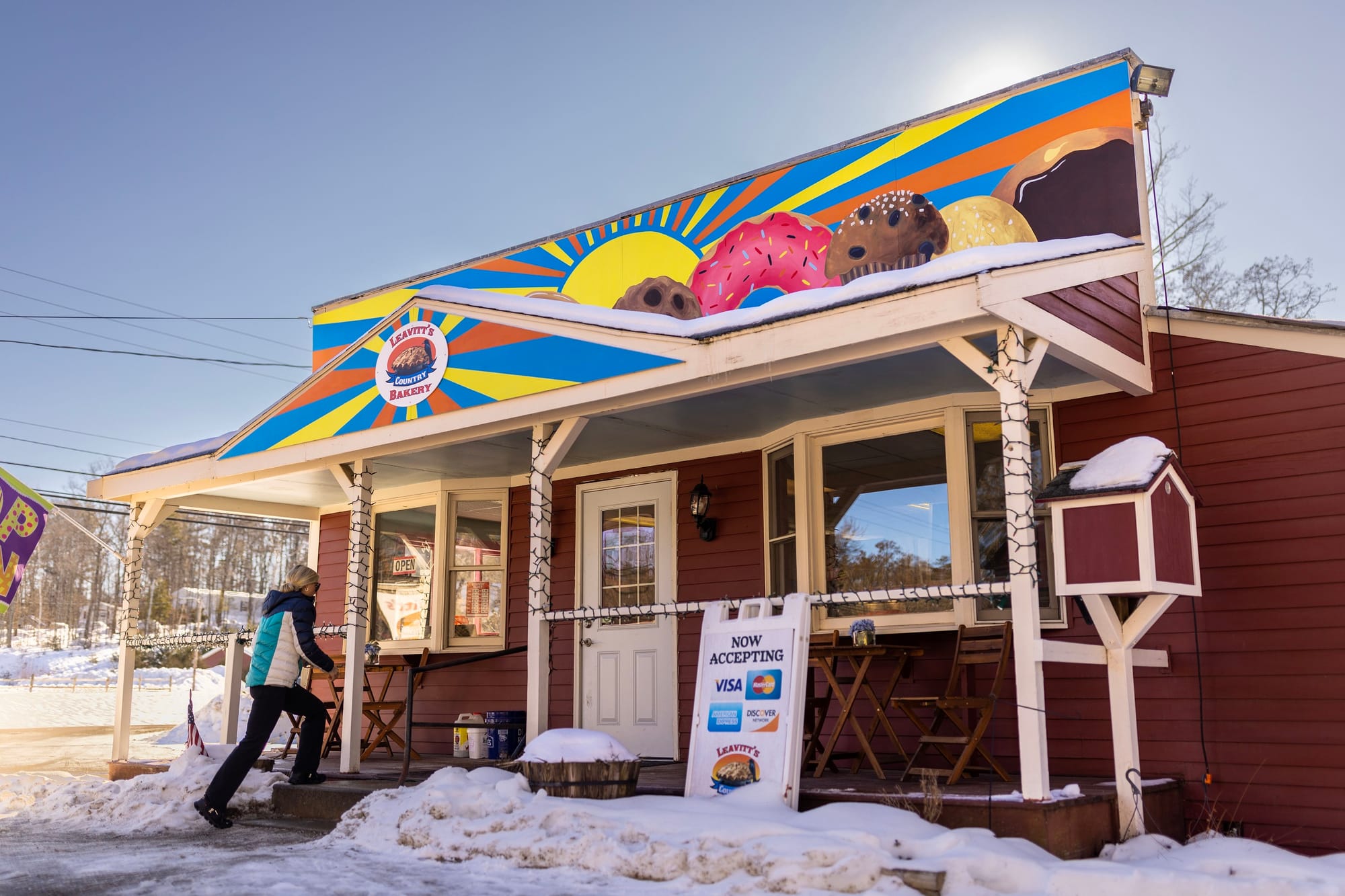 In 2021, Young bought Leavitt's Country Bakery, a nearly 50-year-old local institution. Early last year, a friend connected Young with local Kennett High School art teacher Olivia Benish. Benish was searching for a community art project for her students, and Young agreed to let the class paint a mural on the front facade of his new business. A few months later, the students painted a mountainscape comprised of pastries — doughnuts, muffins, cookies, etc. — against the backdrop of a sunny sky, a nod to Conway's location near New Hampshire's White Mountains. The project took five weeks to paint and was finished in June 2021.