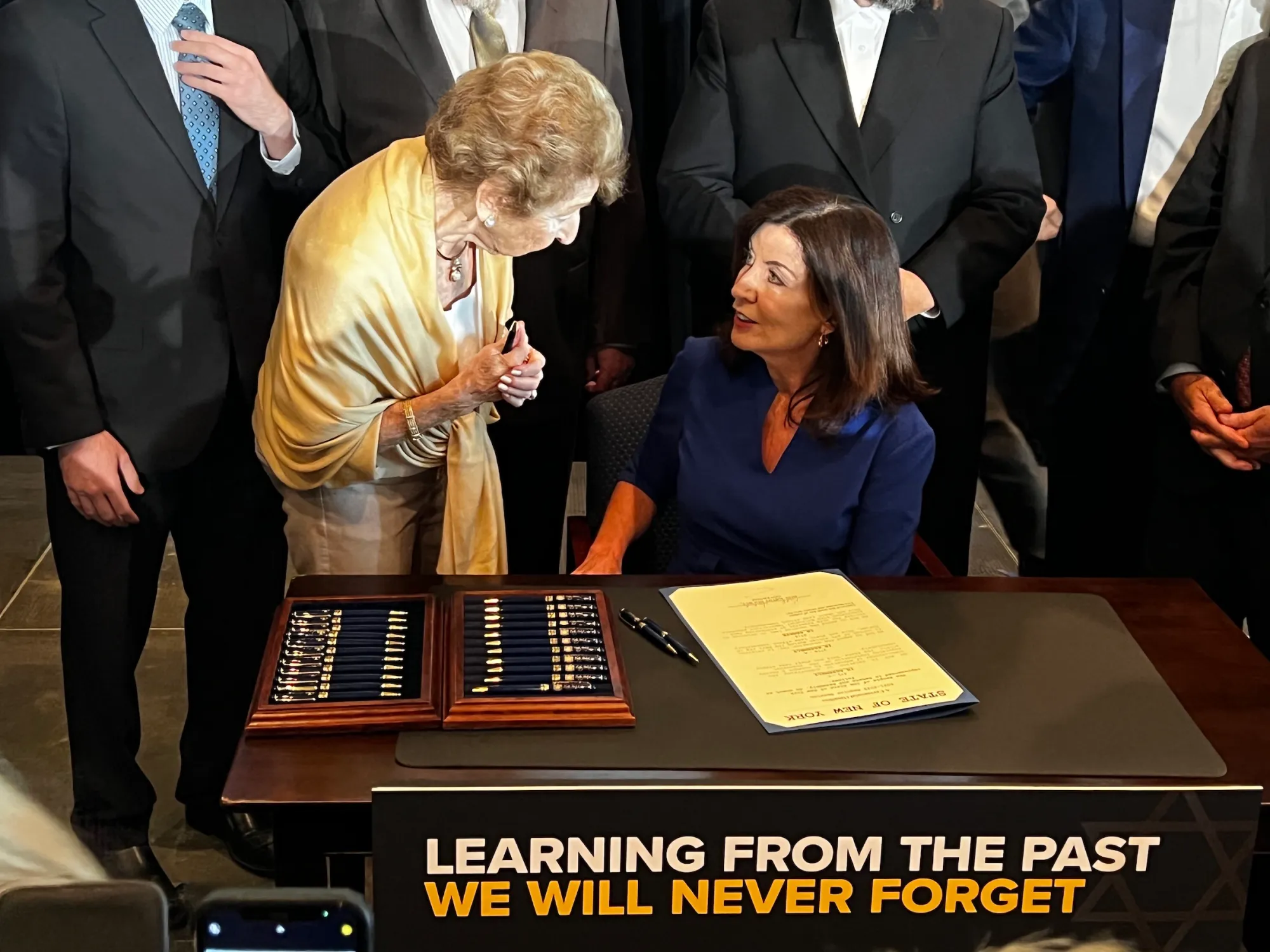 Governor Kathy Hochul signed the law into effect at Manhattan's Museum of Jewish Heritage on August 10. It's part of a trifecta of legislation to educate New Yorks on the Holocaust and support survivors. The other two laws will determine whether schools are meeting the state's 1994 Holocaust education mandates and require the Department of Financial Services to publish a list of banks that wave wire transfer fees for Holocaust reparation payments.