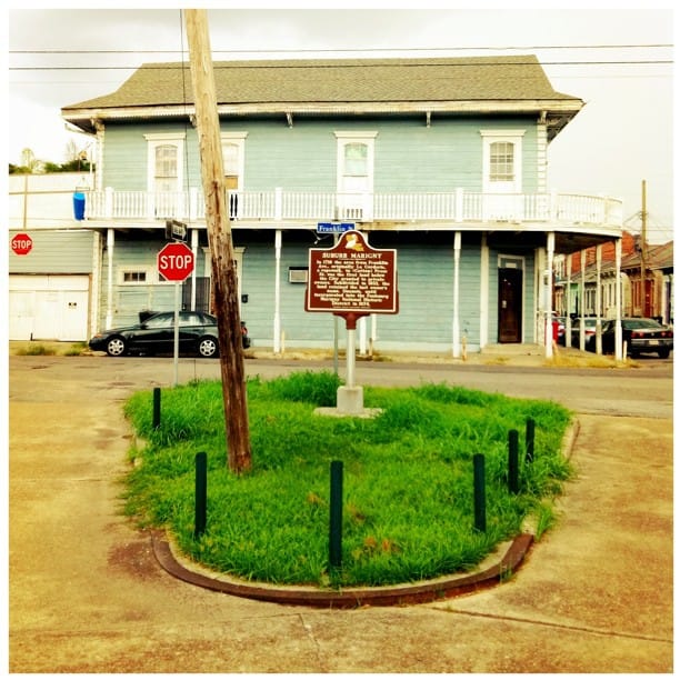 For some reason, the historical marker here refers to the neighborhood as the “Suburb Marigny”. The historian who wrote the text was roundly criticized for doing so.