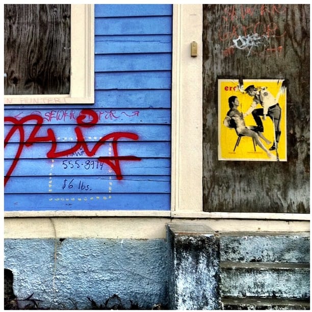 I’ve lived here ever since moving to New Orleans nearly fourteen years ago, so it can be easy to take the Marigny for granted. Anyone coming here for the first time can see that it’s almost painfully photogenic—what with all the creeping jasmine and stray cats and century-old pastel colored shotgun houses and adorably sullen-faced crustypunks hanging outside of Mardi Gras Zone and everything. But ever since it’s become hard to walk down Royal St. on a weekend without being nearly run down by a bicycle tour or running into a Tremé shoot, I’ve tended to forget just how visually rich it is.