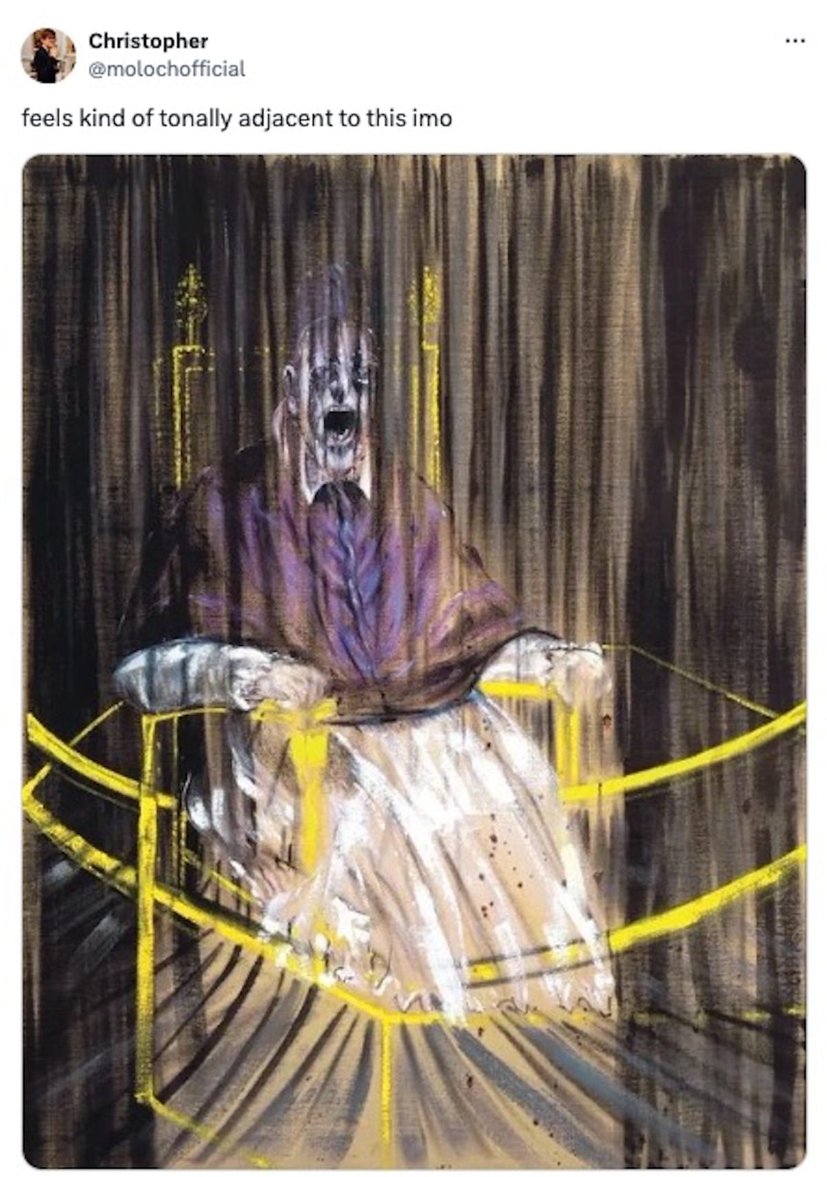 In its visceral fleshiness, some people drew connections between the painting and the work of Francis Bacon.