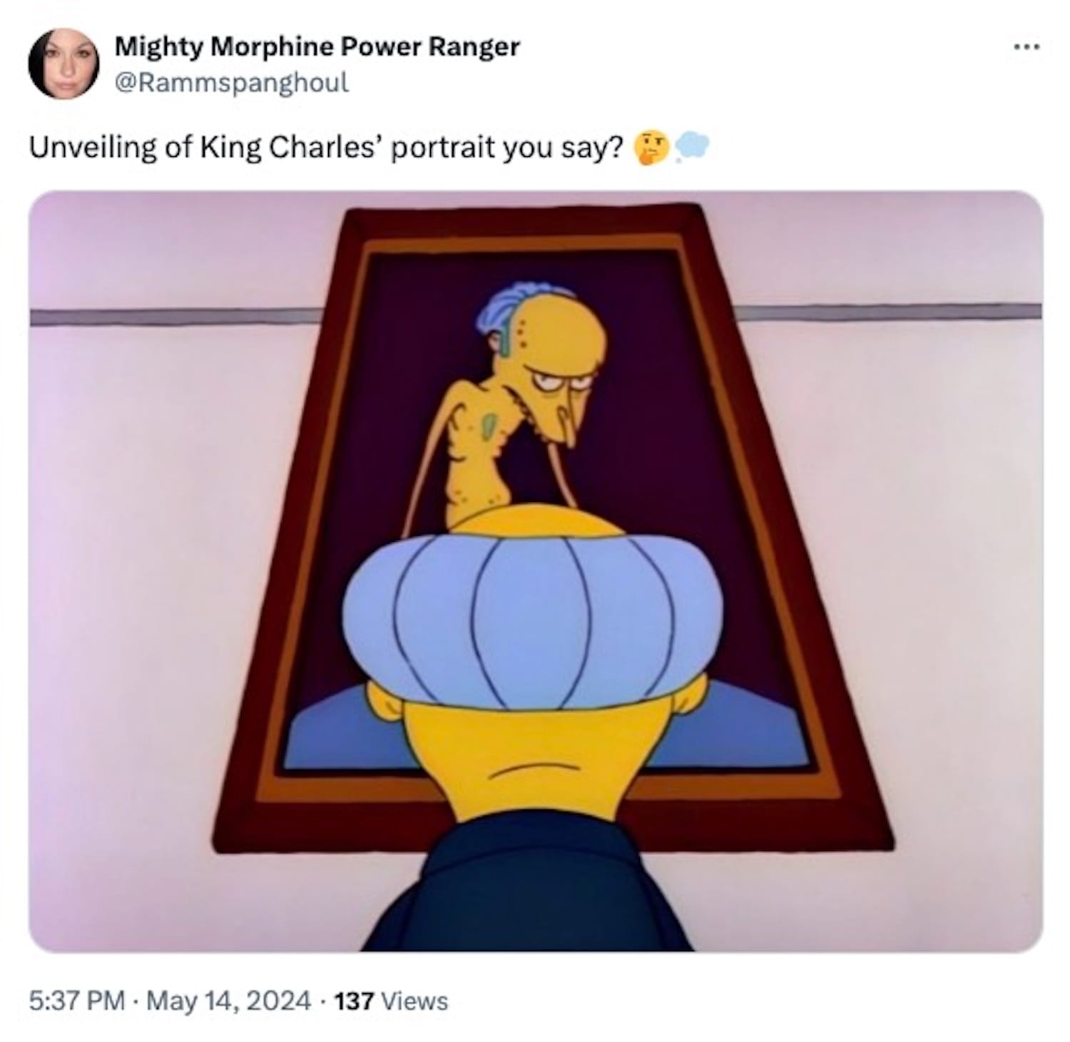Others have been pouring in on X, Instagram, and TikTok, asking if the King is "burning in hell" and whether the artist was riffing off of the "Tampongate" scandal during which Charles recounted his desire to be reincarnated as one of Camilla's tampons in a steamy phone call while he was still married to Princess Diana.