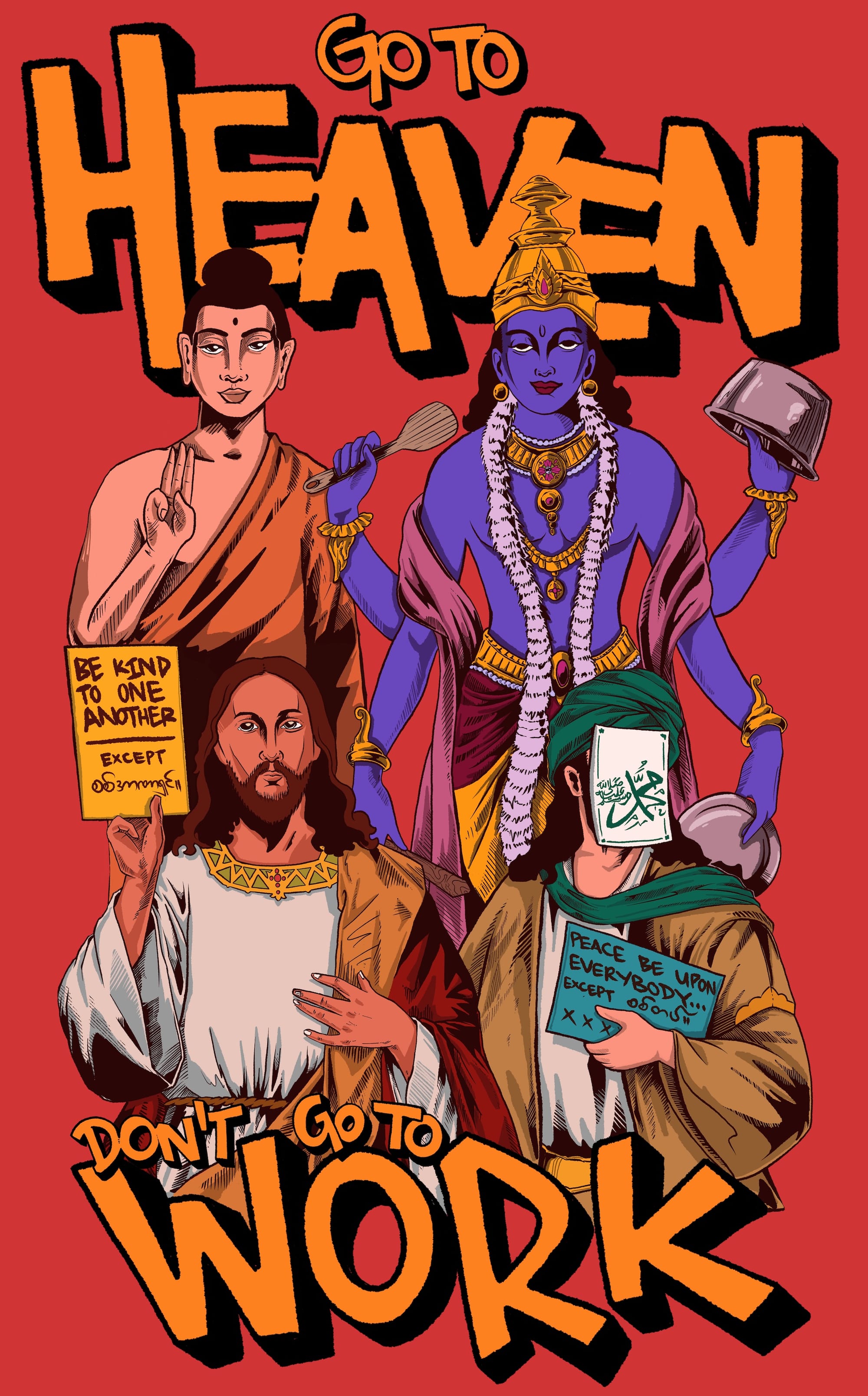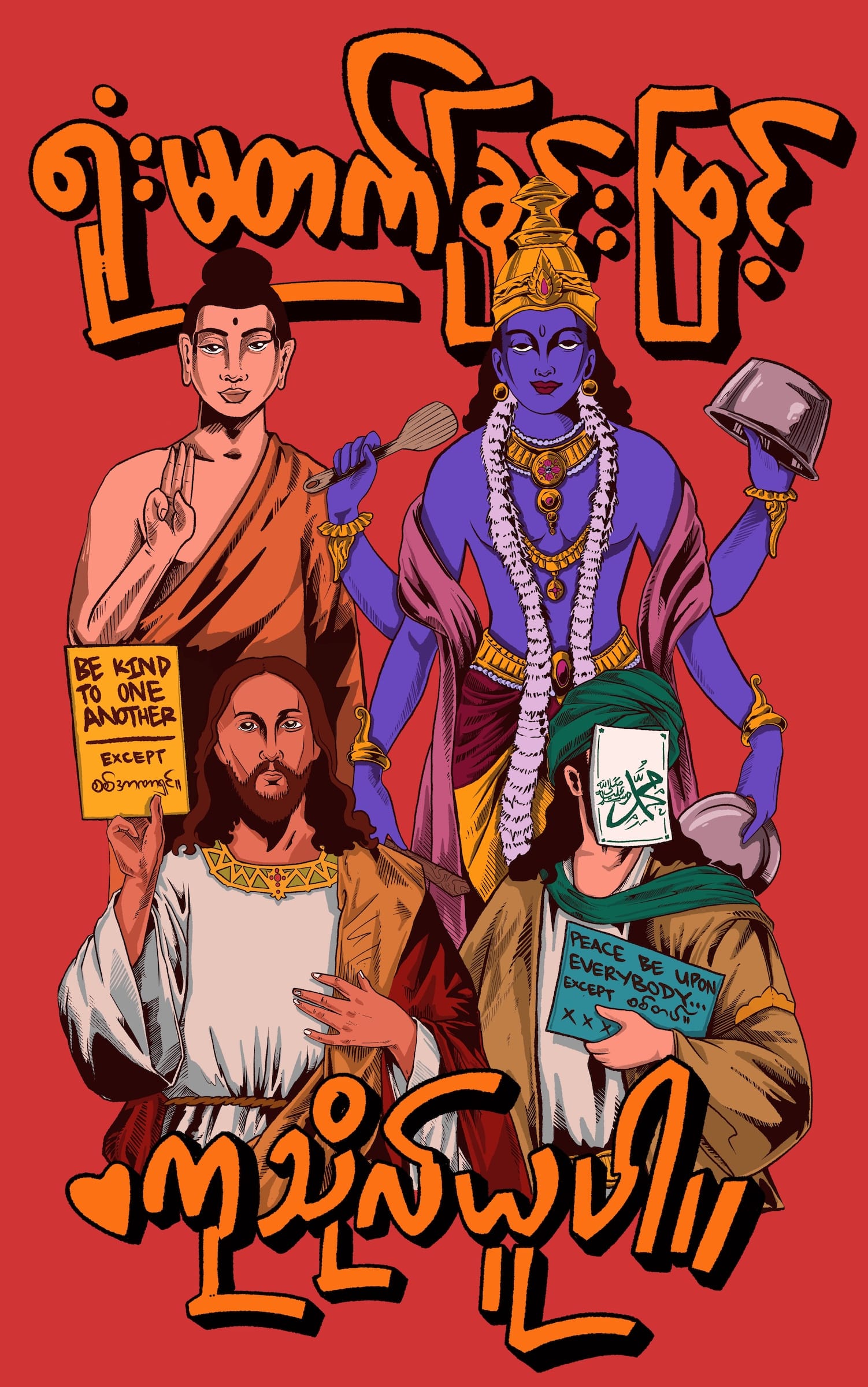 The artist explained that he had always seen adults protesting when he was a kid; Myanmar achieved a short-lived democracy in a 2015 election before the new government was toppled by a military coup in 2021, plunging the country into a state of unrest, warfare, and genocide. More than 17,000 people have been arrested and 13,000 are still in prison. During this time, Bart began focusing on a series titled Seeing Red (2021), which he made available for free download on social media. The works, which depict political leaders and slogans such as "Disobey," served as a form of visual language for the mass protests and strikes sparked by the coup.