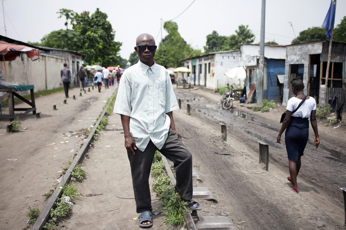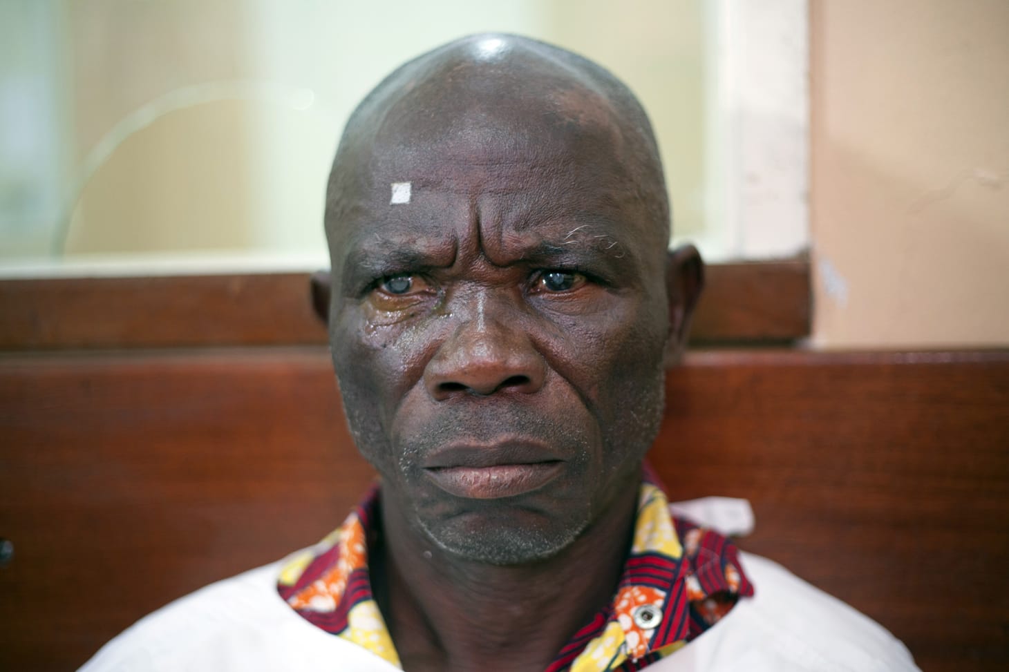 The photographer, Baloji, says that the regaining of sight is also the regaining of dignity. This sentiment is also conveyed in a series of photographs, entitled “Pride,” by another Congolese artist, Georges Senga. The eight photographs focus on the life of a man, Kidiwa, before and after he underwent sight-restoring surgery. The father of seven lost his sight in 2013, and lived for a decade without a job, in abject poverty. Though it is only his eyes that are affected by the surgery, it is his whole body that has transformed. In the photographs before his surgery, he looks like a defeated man, almost apologetic for his own existence. In the ones after, he stands tall and proud.