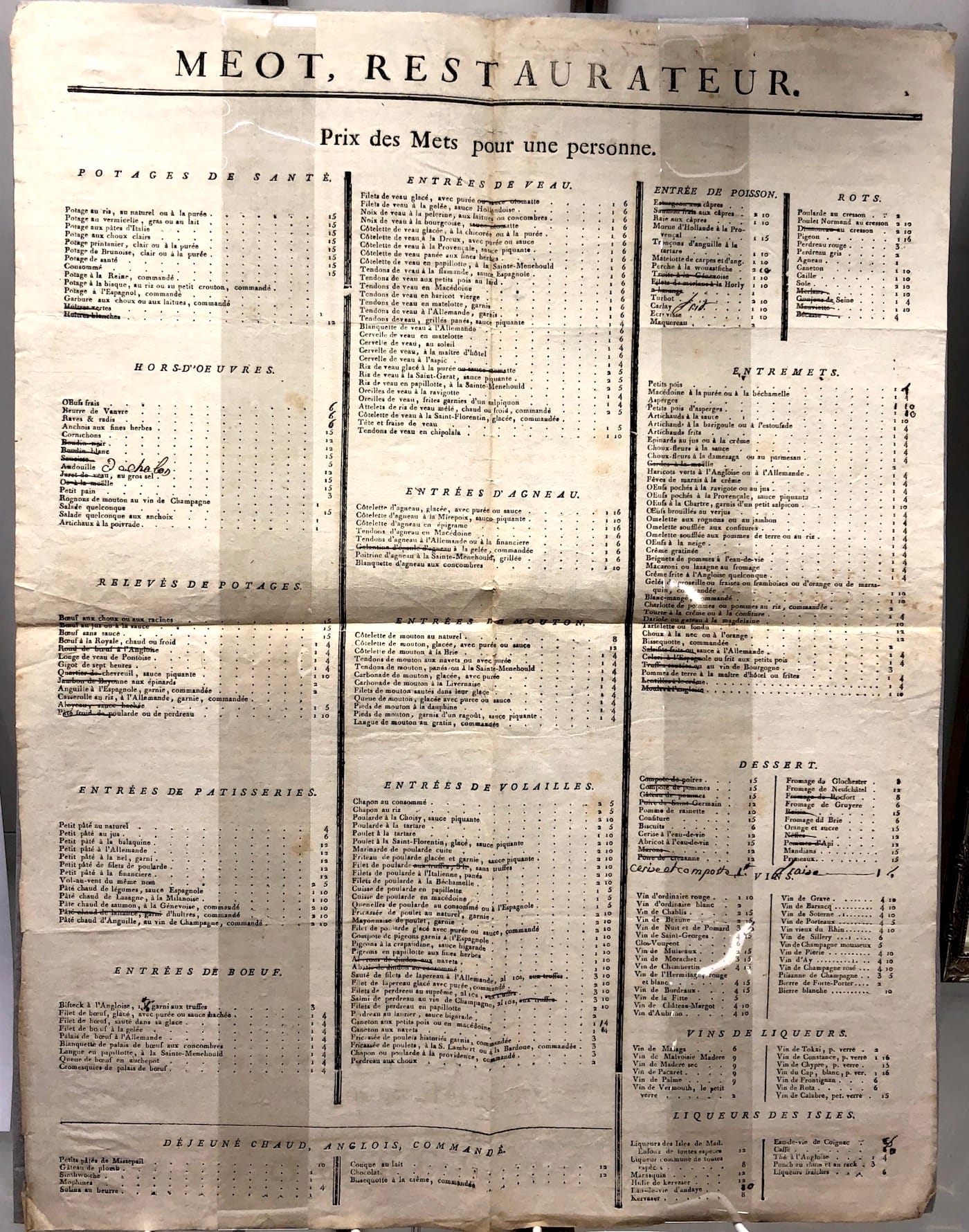The lists of food and drink items in these gastronomical books are like poems in themselves, from the types of wine listed in a 1829 treatise on the Art of Making Wine (gooseberry, currant, brisk, leaves and tendrils, cowslip, and apricot) to the 12 kinds of pâté listed in a 1791 French restaurant’s menu, which is described as “a truly astonishing survival.” Other highlights include Joseph Berchoux’s 1801 poem on “the pleasures of the table” that is thought to have popularized the term “gastronomie” and a 17th-century French cookbook in which “the author provides directions for folding napkins in twenty-six different forms, including one for a turkey.” One of the most surprising items is a medical manuscript from 1670-90 on eating disorders, in which the author recommends wine and absinthe as cures.