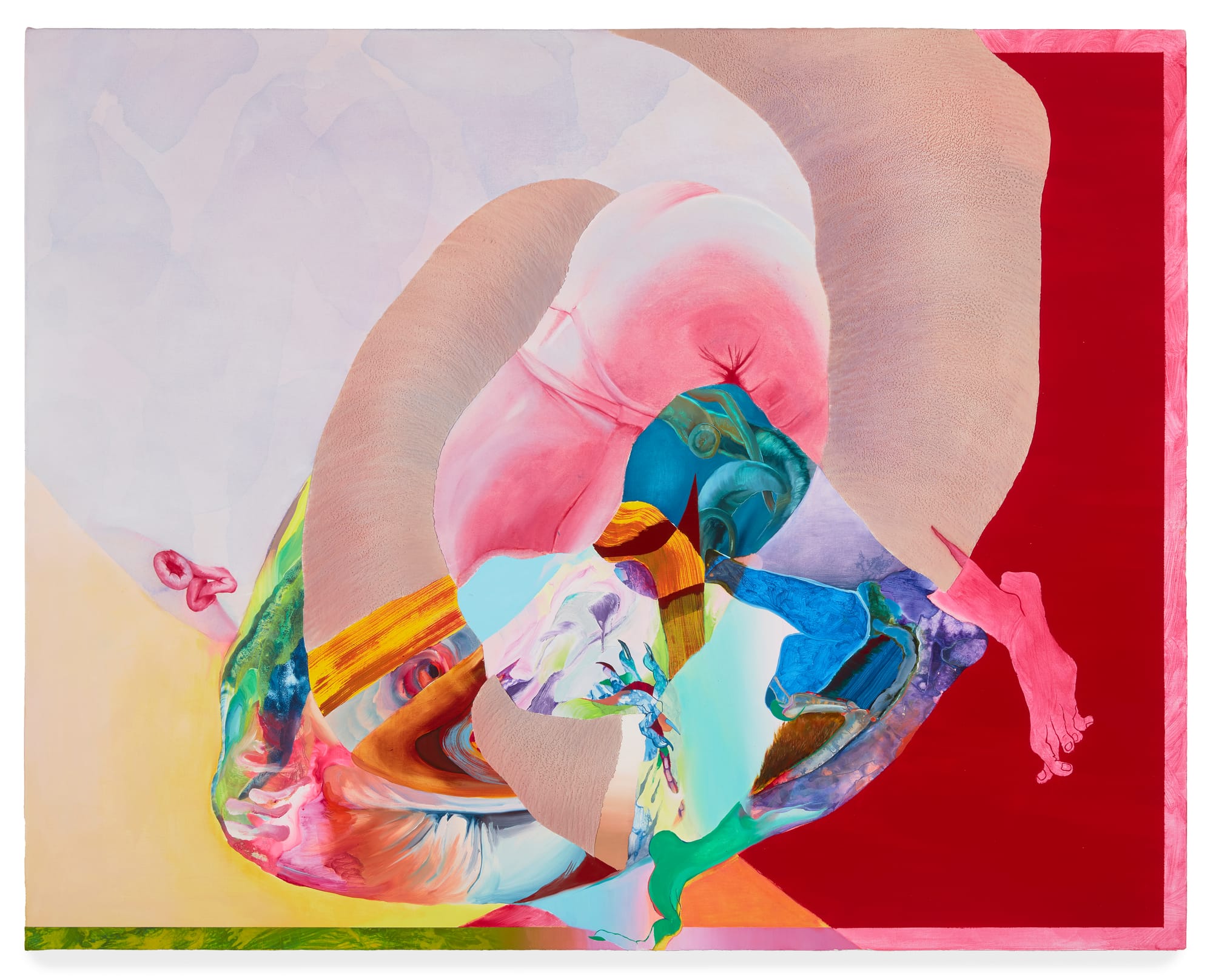 For her first solo exhibition with Deli Gallery, the Colombia-raised artist presents new and recent paintings of fluidly abstracted, proliferating body parts rendered in vibrant hues with slick, waxy surfaces, as well as two achromatic ink drawings on the same theme. Deriving inspiration from the massive folkloric carnival that occurs yearly in her hometown of Barranquilla, Savdie depicts the ecstatic and excessive body as a site of subversion and reclamation.