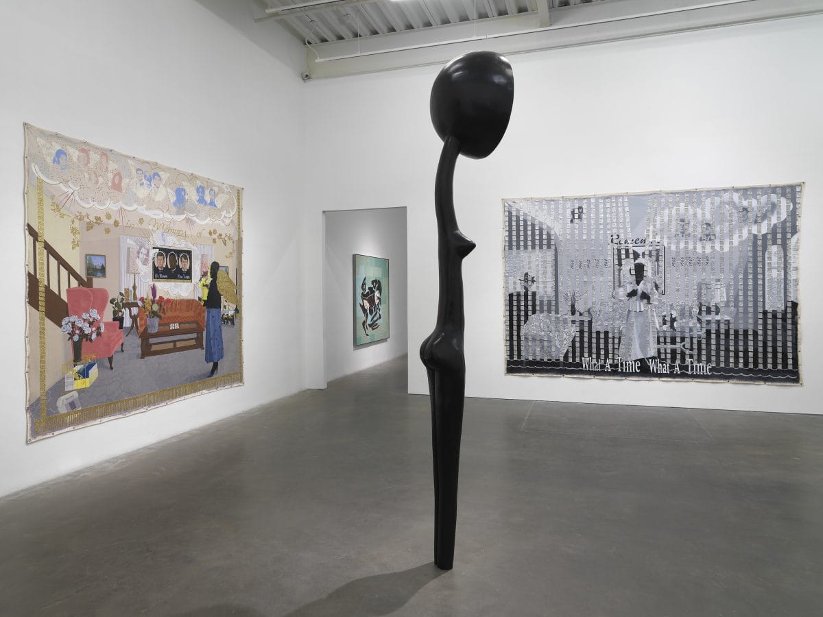 Originally conceived by the esteemed curator Okwui Enwezor, who died of cancer before the show was completed, Grief and Grievance poetically explores themes of Black mourning, commemoration, and loss in the face of white nationalism. The expansive show, which stretches across three floors as well as the museum’s edifice and lobby galleries, presents a diverse array of work made from the 1960s to the present day by 37 intergenerational Black artists, from Garrett Bradley and Cameron Rowland to Howardena Pindell and Jack Whitten.