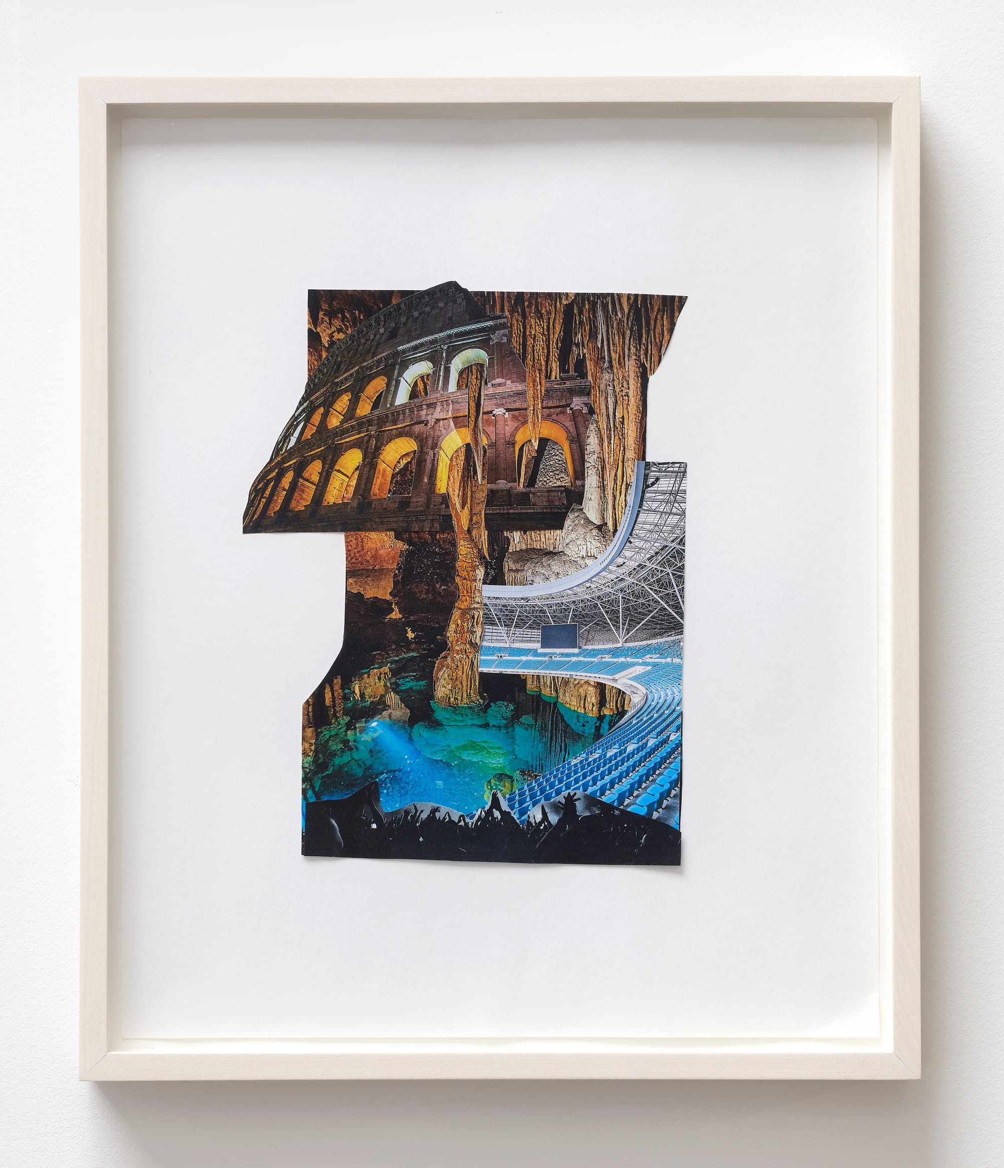 In her second solo show with 56 Henry, Los Angeles-based artist Nikita Gale considers the ways in which we viscerally experience bodies as both absent and present, and the porousness of those categories. Spanning media, the works on view include inverted photographs of audio cables floating in space, a translucent record that plays the sound of breathing on loop, collages that explore the social function of caves, and sculptures referencing public vernacular architecture.