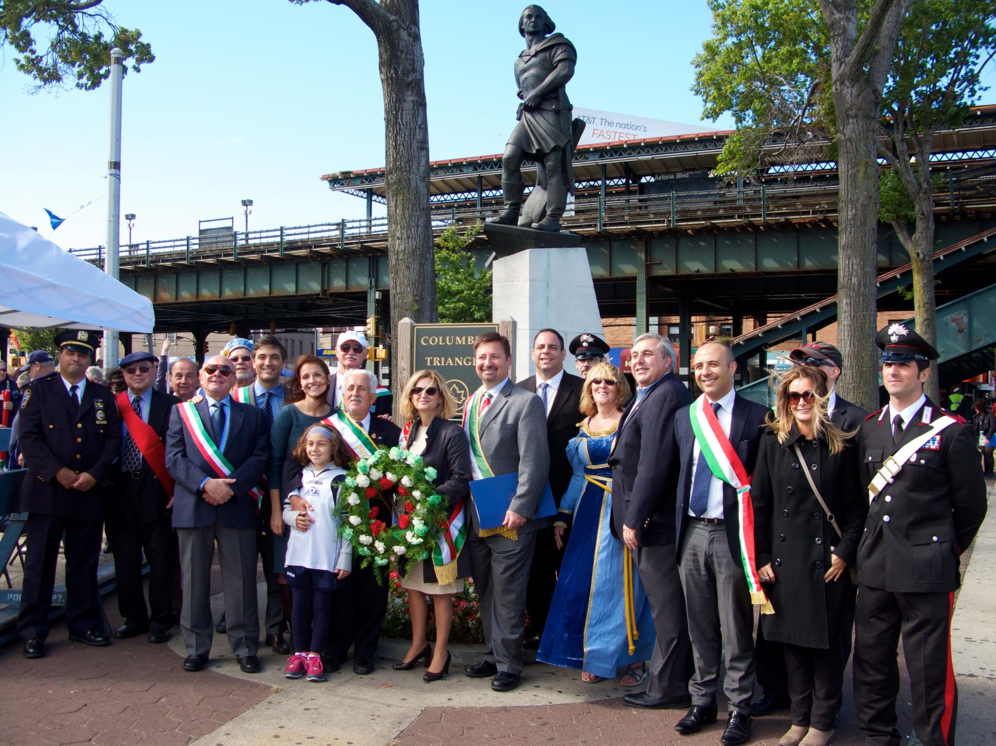 At Columbus Triangle between Astoria Boulevard, Hoyt Avenue, and 31st Street stands a modern statute of the conquer, designed by Angelo Racioppi in 1941. The statue was commissioned with funds from the New York City Works Progress Administration Art Project (WPA).