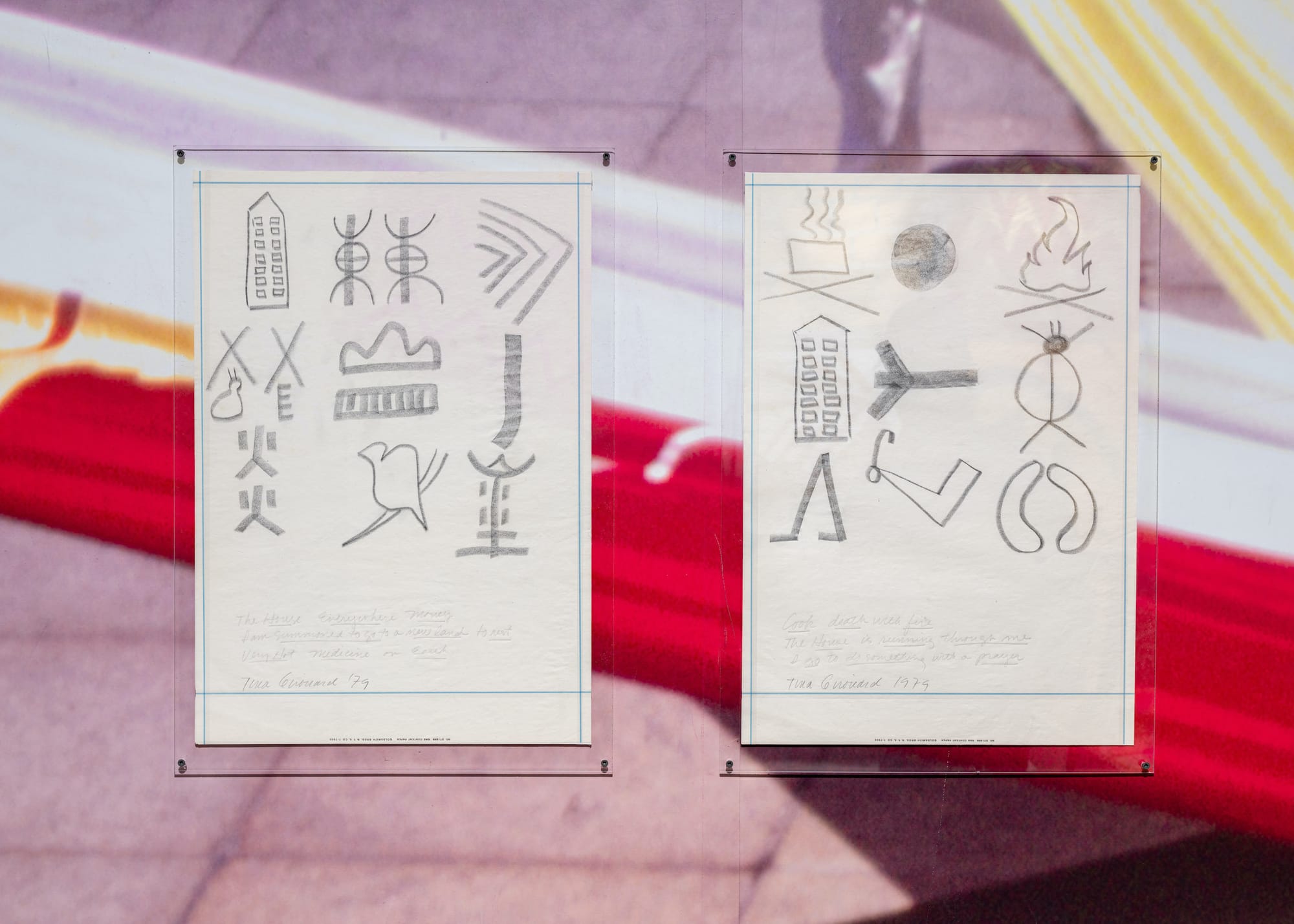 You could ask how such an artist could have largely slipped out of the art historical canon. Because she’s a woman, of course. Because she alternated between New York and Louisiana, maybe. Because her work was so wide-ranging that it’s hard to pin her to a particular movement — Pattern & Decoration? Video art? I’m not so sure she would care. She seems, to me, driven by an internal rhythm, someone whose mind moves through material, whether film, performance, drawing, textile, installation, or collaboration. One thing she’s never been called, as far as I can tell, is a poet. But I think that nebulous form finds its analog in her amorphous interests and aesthetic. At CARA, a set of notes for an enigmatic language she was developing feels like it embodies her philosophy of art-making as, in her words, “life-making.” On a sheet of stationery are three roughly drawn cryptograms, one of an apartment building, another of what looks to be a Rosie-the-Riveter-esque crooked arm, the last of two abstract symbiotic shapes. She translates in text written in pencil below: “The House is running through me.” I think I would call her a poet, too. —Lisa Yin Zhang